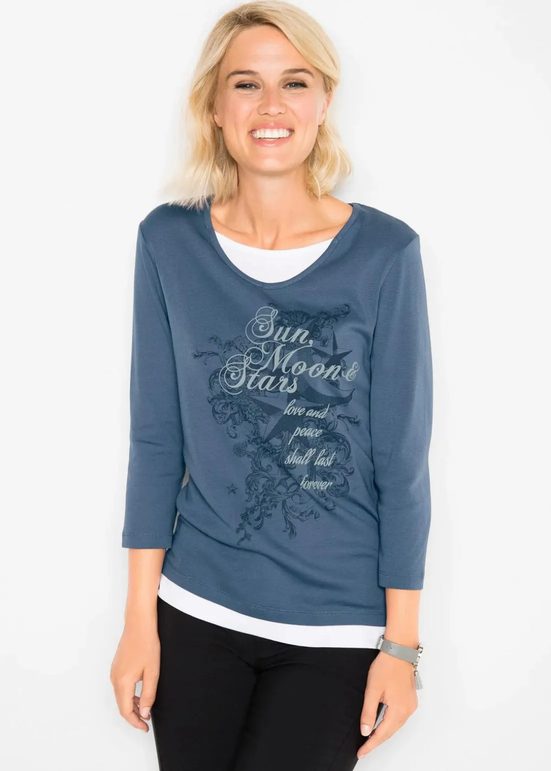 Bequemes 2-in-1-Shirt mit Druck und 3/4 Arme aus Baumwolle