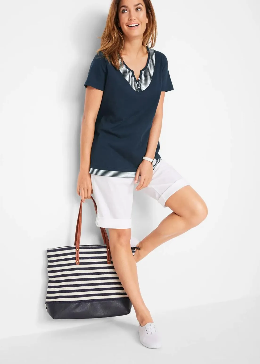 Figurumspielendes Kurzarm-Shirt in 2in1 Optik