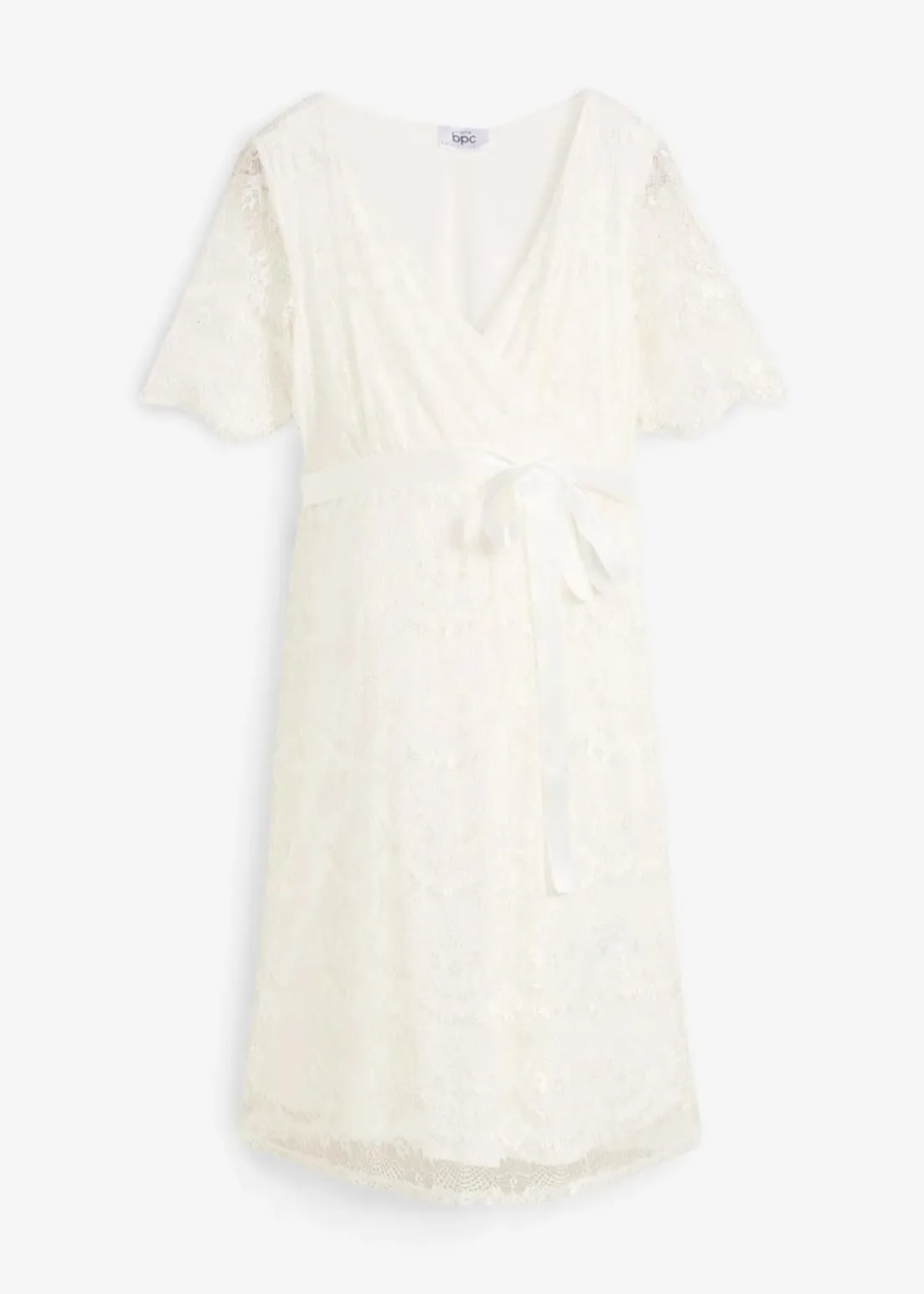 Elegantes Umstandshochzeitskleid aus weicher dehnbarer Spitze