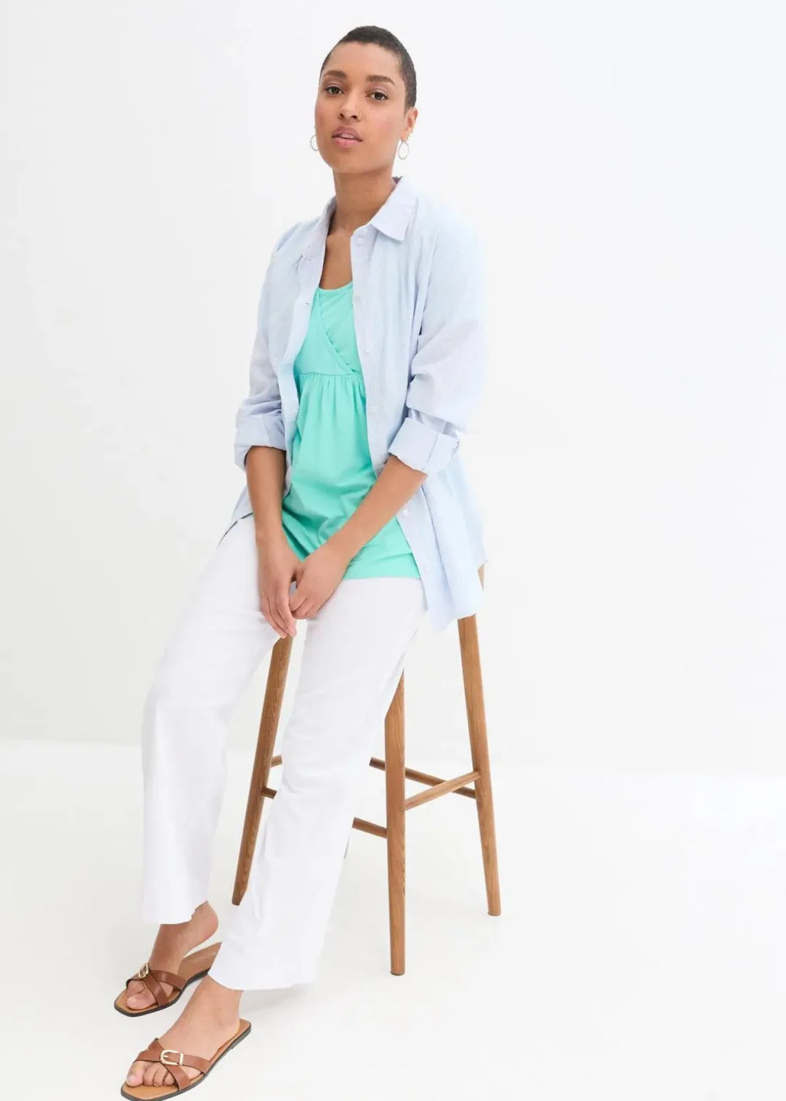 Weiche Umstandsshirts aus Jersey im Wickelschnitt mit unauffälliger Stillfunktion. Das praktische Innentop hilft Wärmeverlust zu vermeiden und ermöglicht ein angenehmes Stillen für Mutter und Kind.
