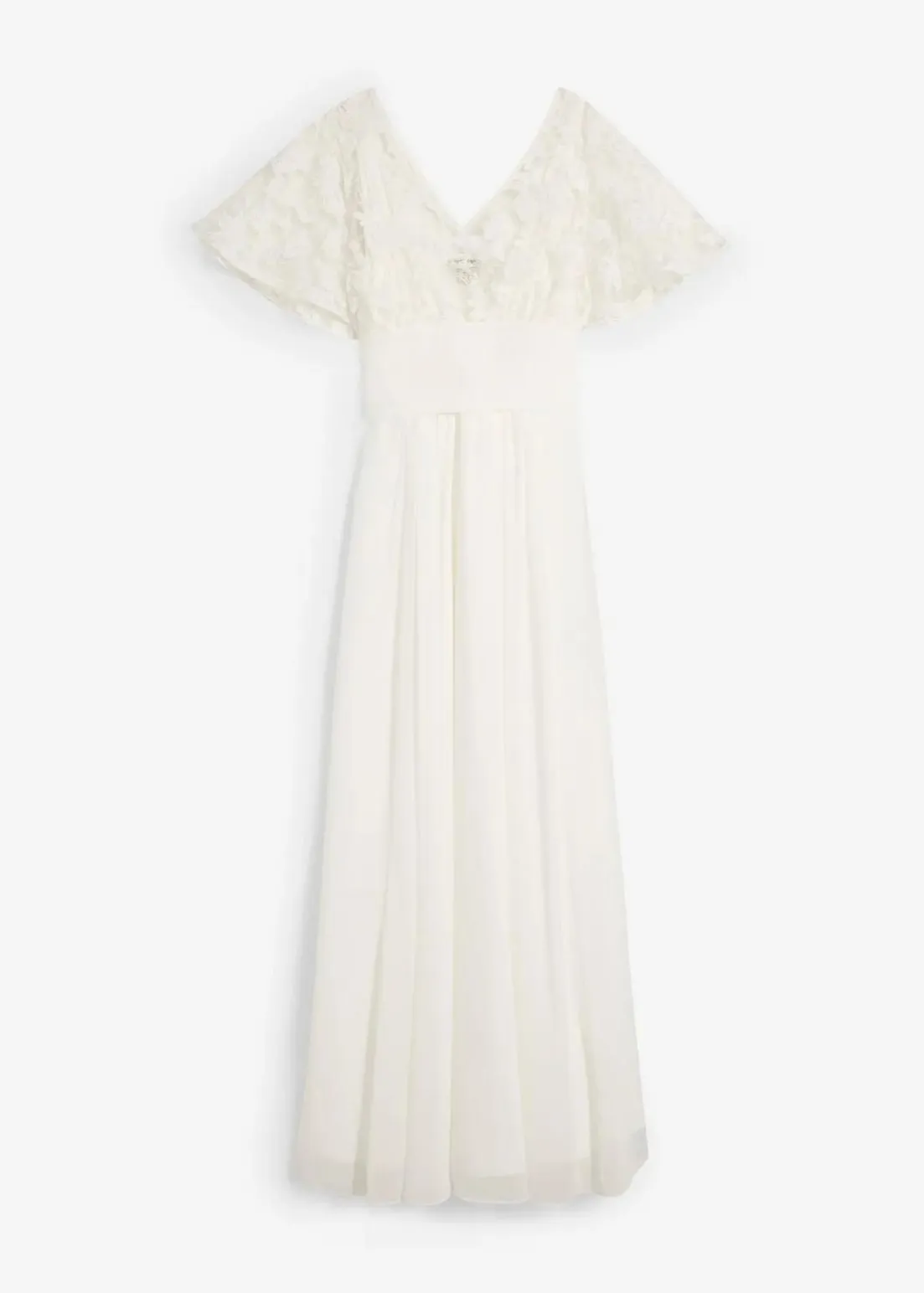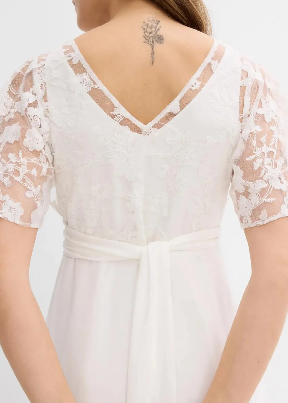 Hochzeitskleid aus Spitze und Chiffon für die Schwangerschaft und danach