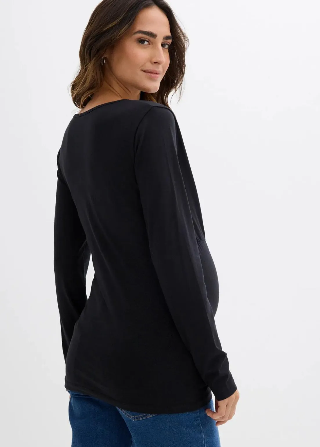 Langärmlige Umstandsshirts aus weichem Jersey aus Bio-Baumwolle mit etwas Stretch für angenehmen Tragekomfort. Sie verfügen über einen V-Ausschnitt im Wickelschnitt mit unauffälliger Stillfunktion und kurzen Ärmeln in schmeichelhafter Länge. Das Design mit doppelten Lagen hilft, Wärmeverlust zu vermeiden und ermöglicht ein angenehmes Stillen für Mutter und Kind.