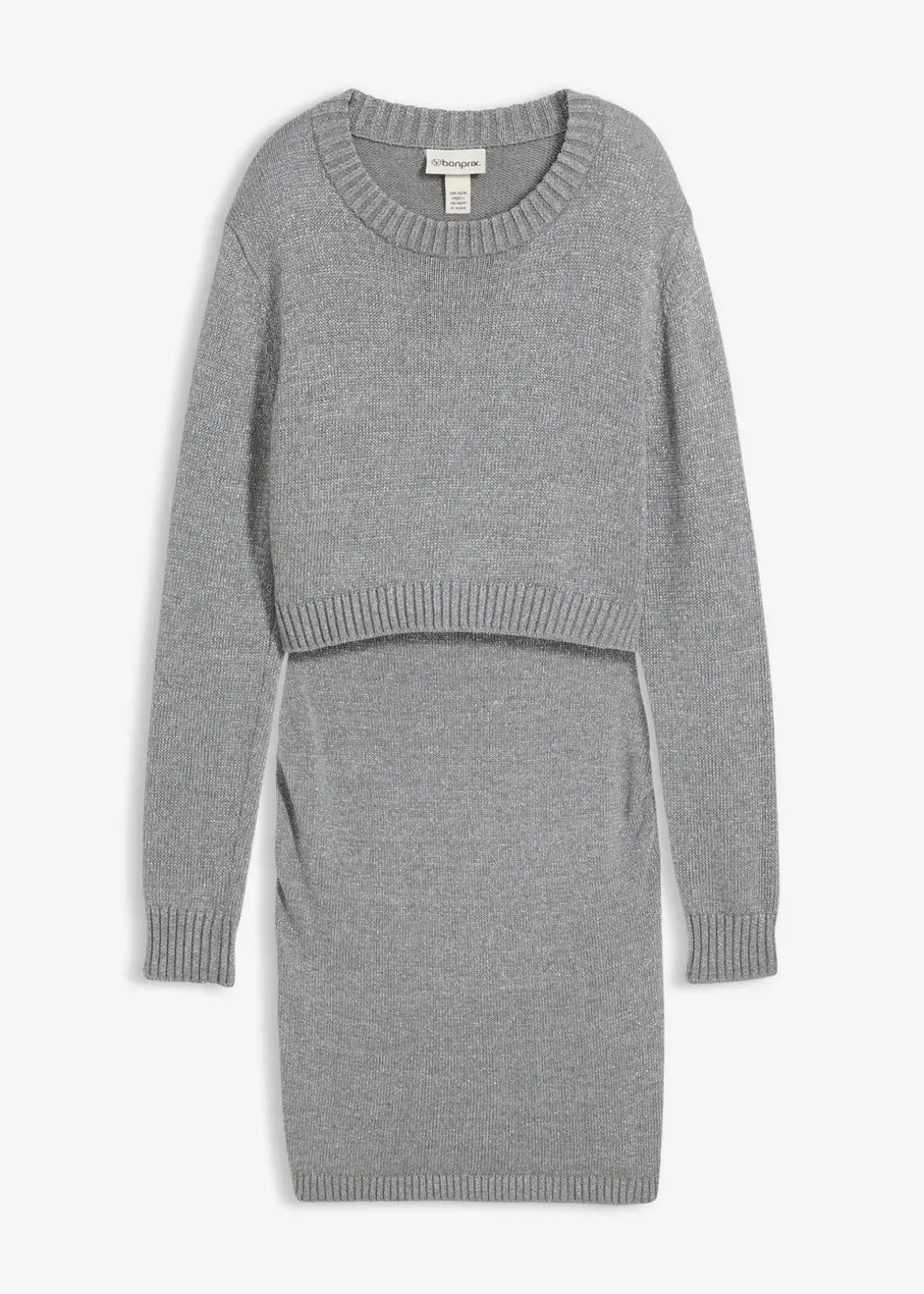 Dieses 2-teilige Umstandsset aus einem Cropped-Pullover und einem figurbetonten Rock kombiniert Stil und Komfort. Der Pullover mit Rundhalsausschnitt, langen Ärmeln und lässigen, überschnittenen Schultern sitzt bequem und modern. Der Rock in schmaler Passform und kurzer Länge betont Deine Silhouette. Beide Teile sind mit dezentem Glanzgarn veredelt – perfekt für einen besonderen Look während der Schwangerschaft.