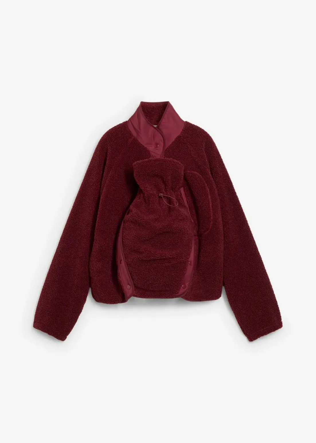 Kuschelige Teddyjacke mit abnehmbarem Babyeinsatz, der per Druckknöpfen befestigt wird. Mit Stehkragen, einer Brusttasche und seitlichen Eingriffstaschen.