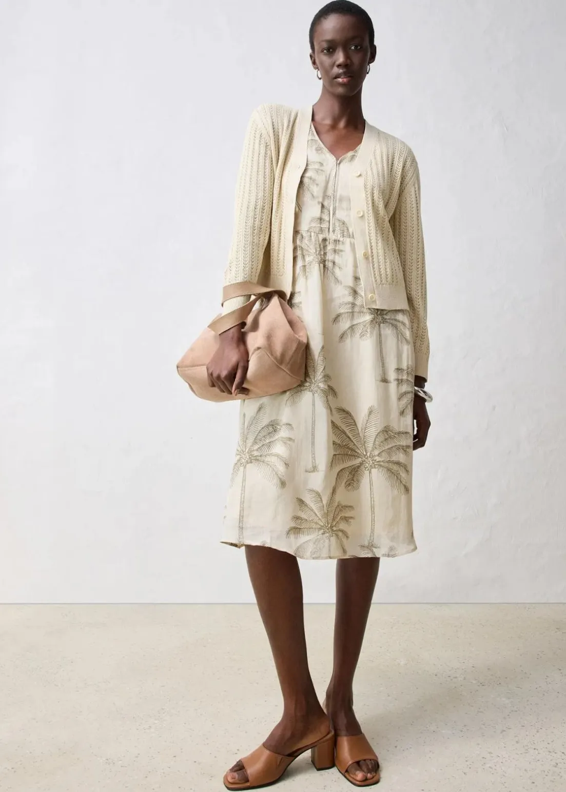 Ideal für den Sommer ist diese Ajour-Strickjacke mit Leinenanteil