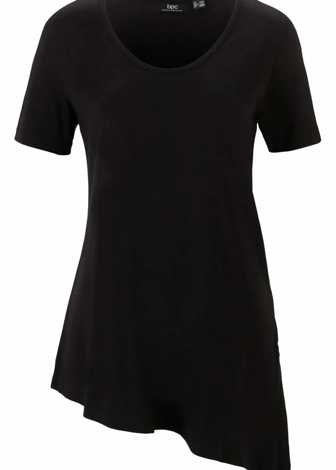Longshirt mit asymetrischem Saum und Seitenschlitz, tiefem Rundhalsausschintt und kurzem Arm
