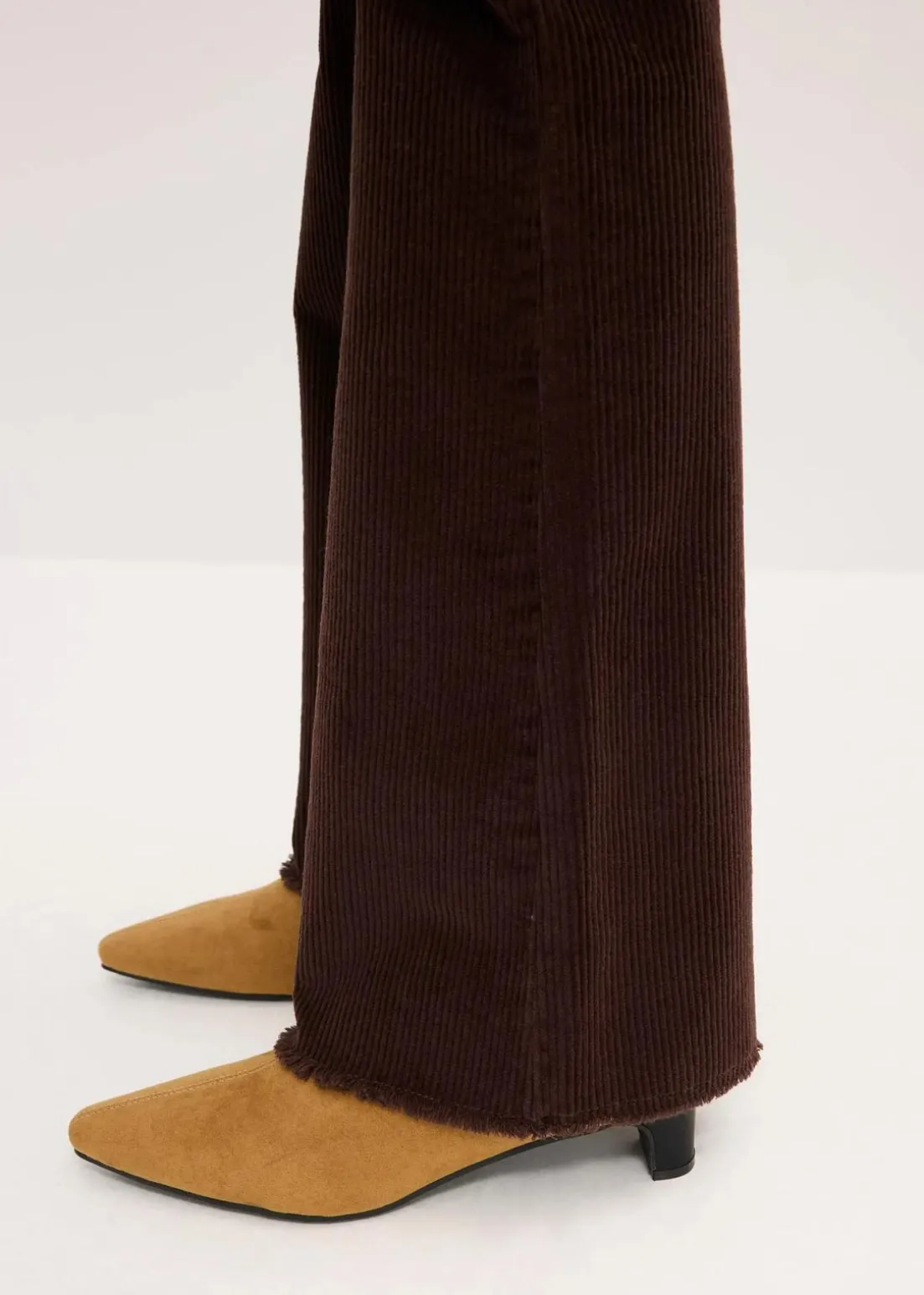 Lässige Cordhose mit ausgestelltem Bein und offenem Saum