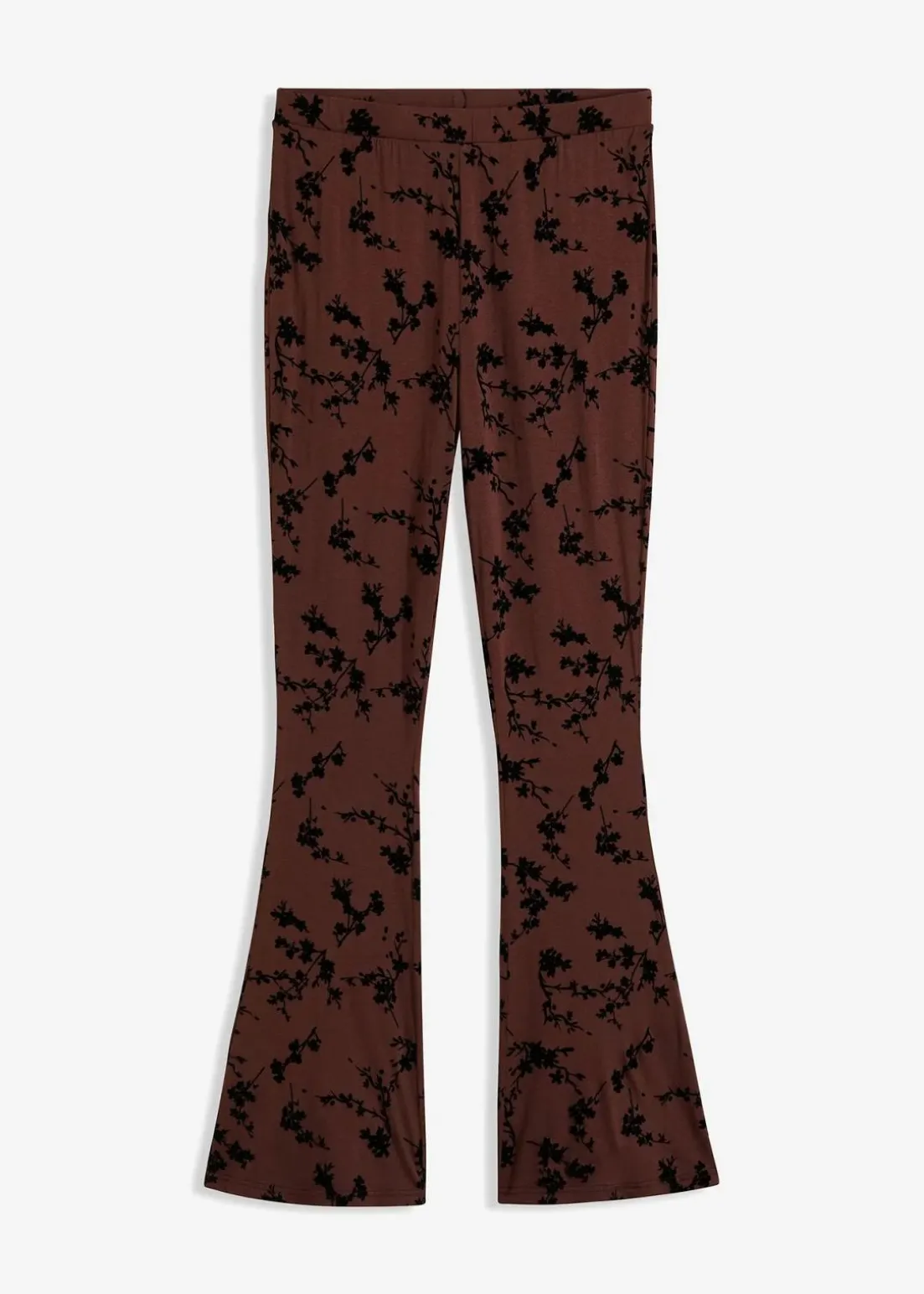 Ausgestellte Leggings aus softer Viskose mit Flockprint