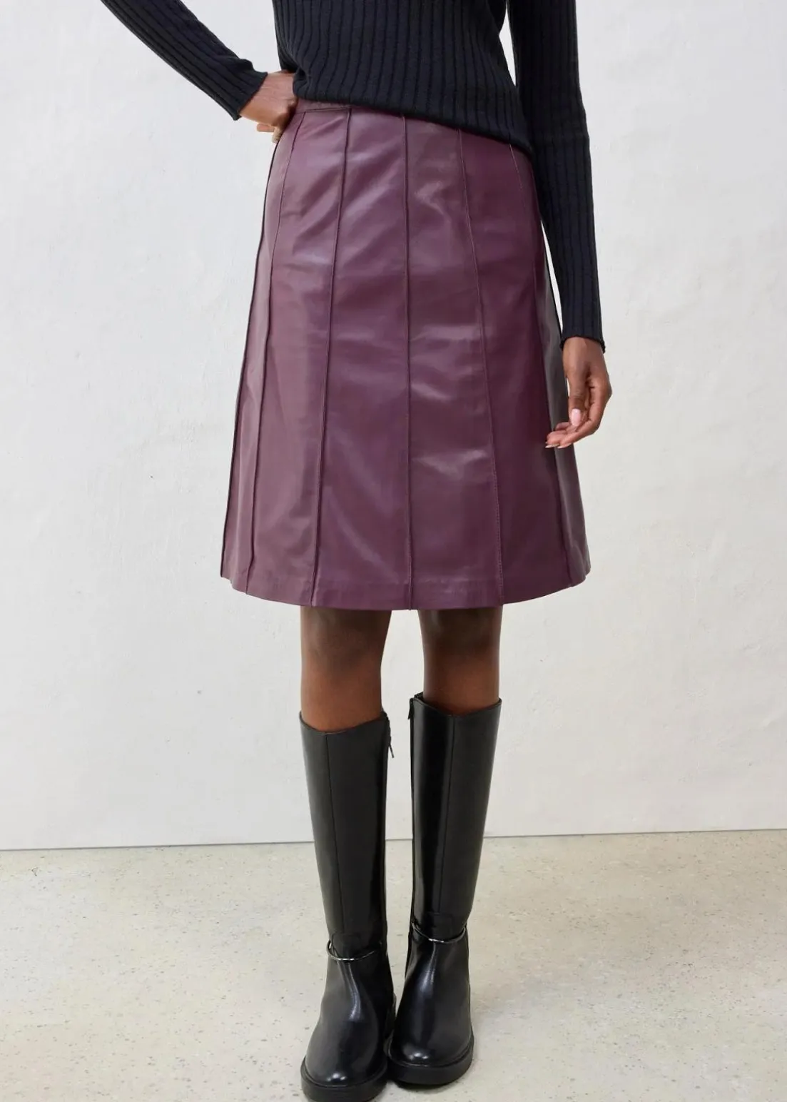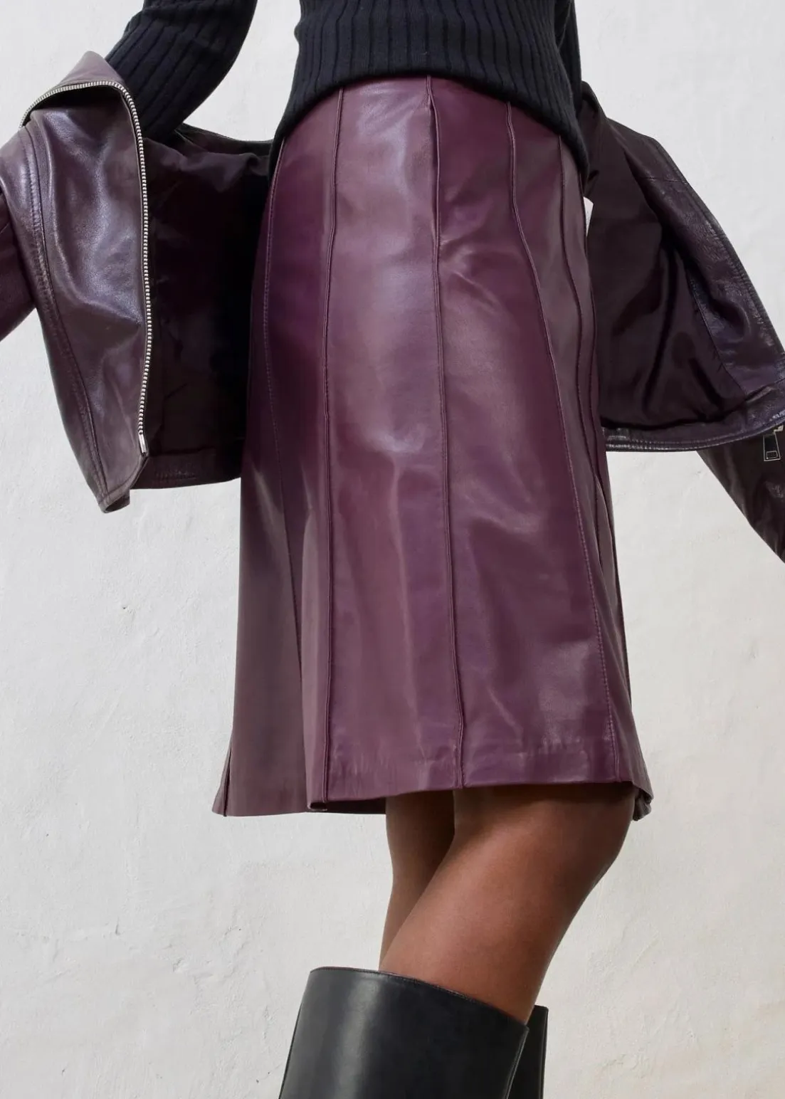 Trendiger Ausgestellter Lederrock aus Lammnappa, verziert mit Biesen