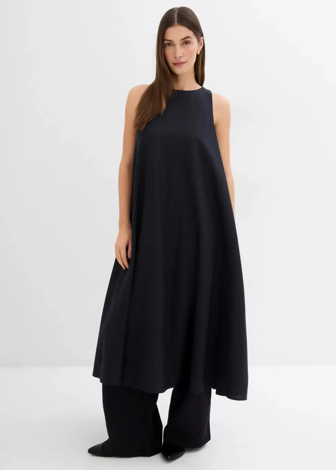 Midikleid in lockerer Passform mit einem elastischen Ausschnitt sowie Seitennahttaschen