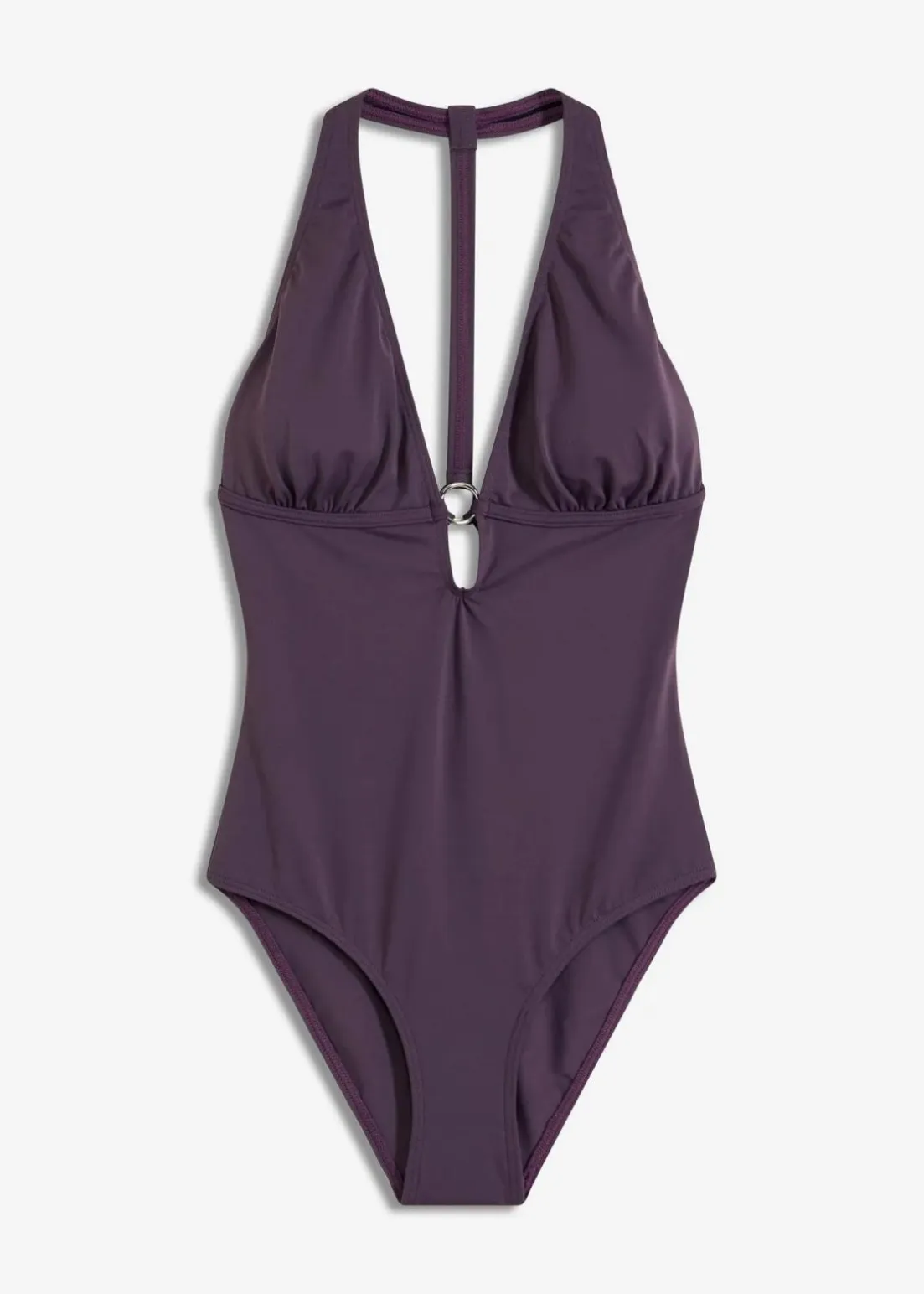 Dieser raffinierte Badeanzug macht in Sachen Aufmerksamkeit jedem Bikini Konkurrenz. Das attraktive Modell präsentiert sich vorne und hinten mit einem tiefen Ausschnitt. Am Dekolleté setzt ein dekorativer Ring einen Akzent und rückseitig fällt der Badeanzug mit seinem Ringerrücken sowie einem Cut-Out auf.Ein Brustfutter, herausnehmbare Softcups und ein Unterbrustgummi sorgen für einen sanft modellierenden Effekt. Der Badeanzug eignet sich vor allem für A- und B-Cups.