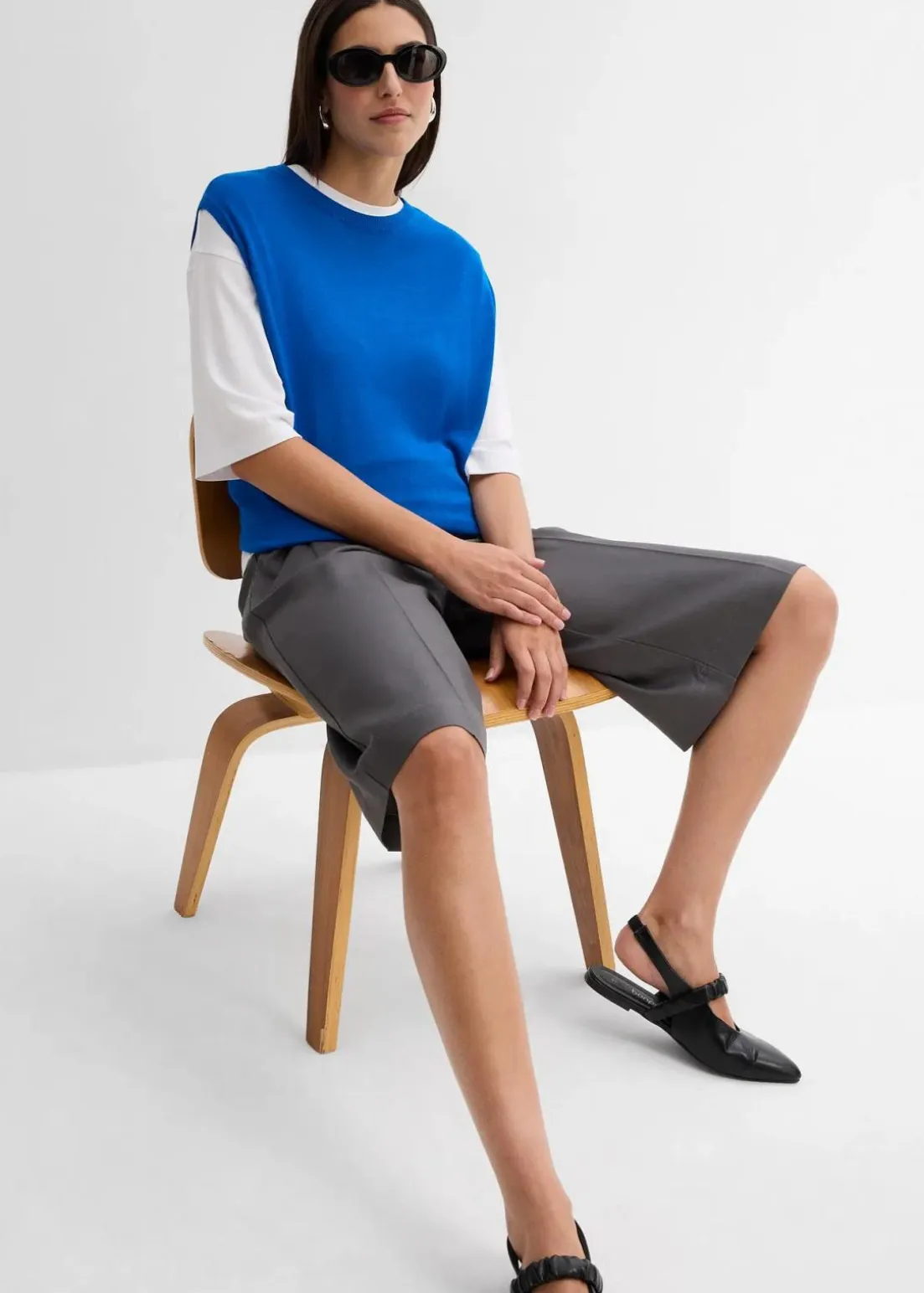 Gerade geschnittenes Stricktop mit Runhalsausschnitt