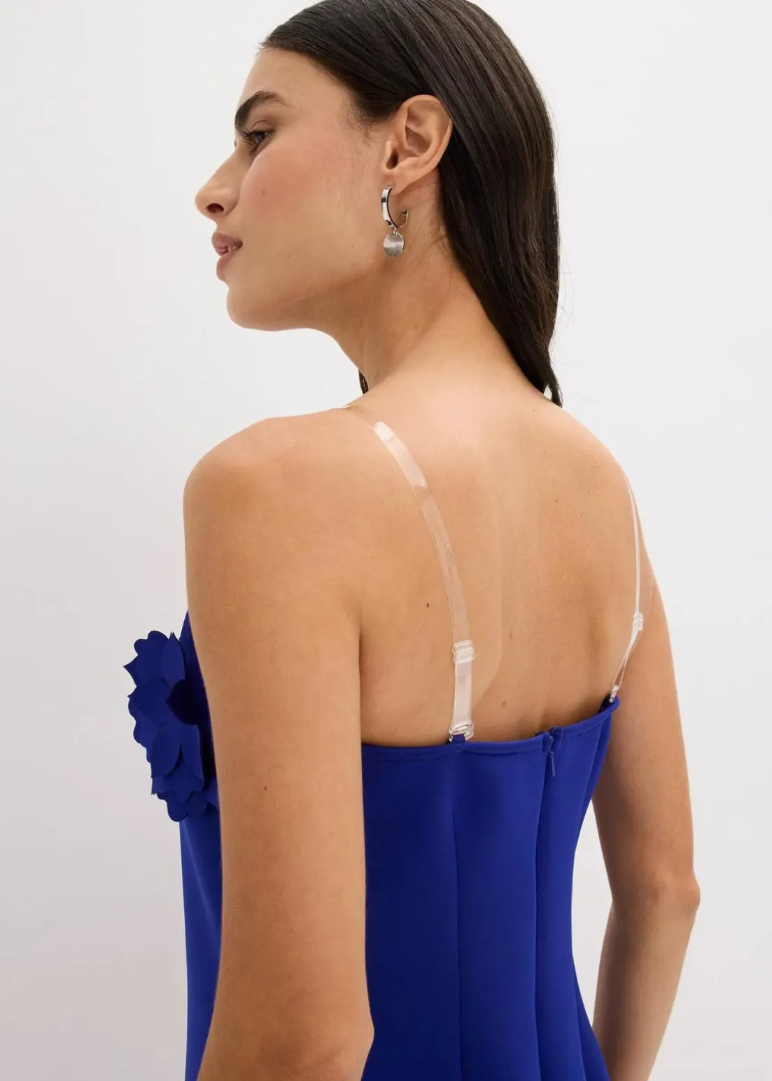Mondern und feminin: Bandeau-Kleid aus fester Scuba-Qualität mit Blumen-Applikation