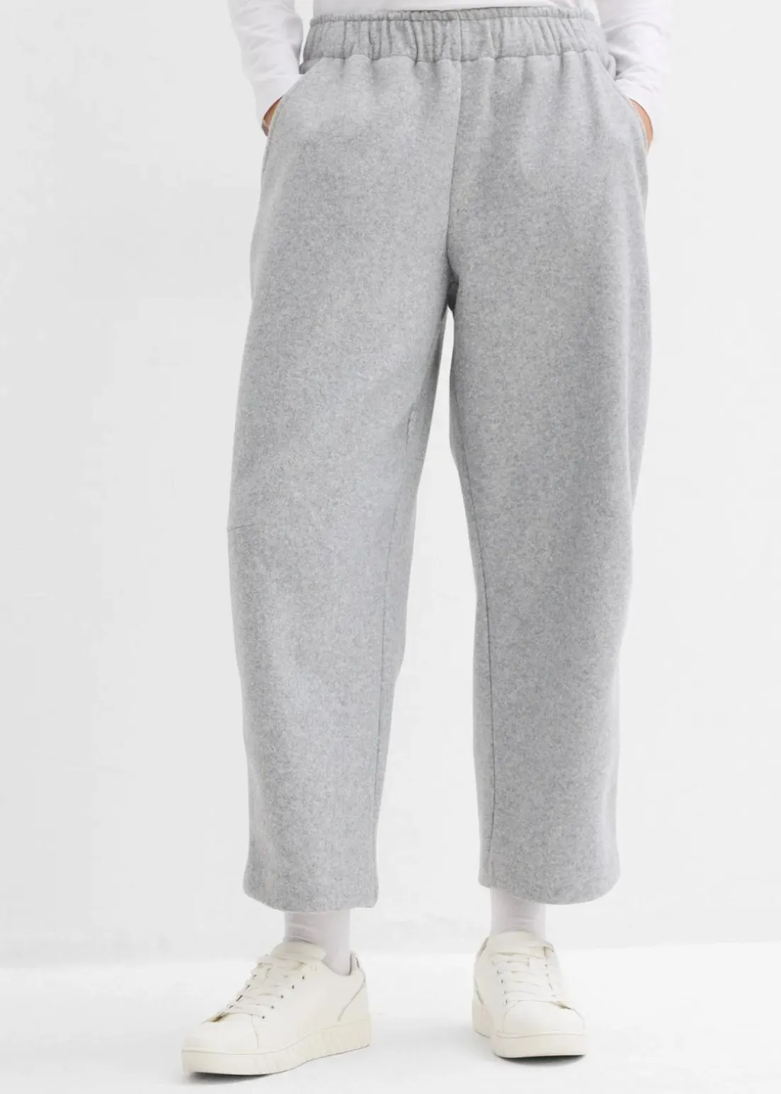 Barrelhose mit hochgeschnittenem, elastischen Bund in verkürzter Länge.