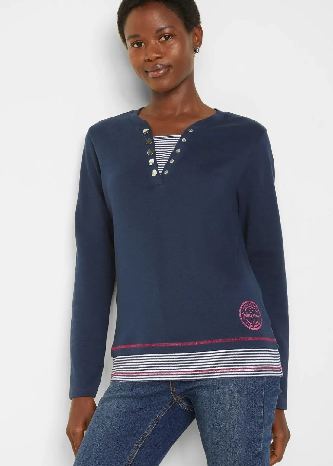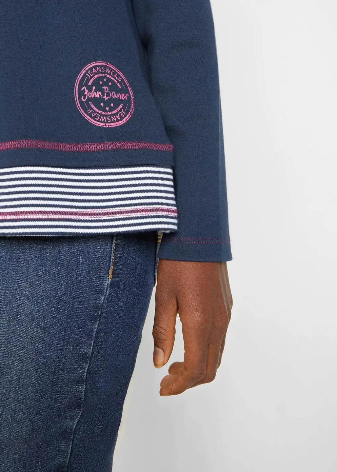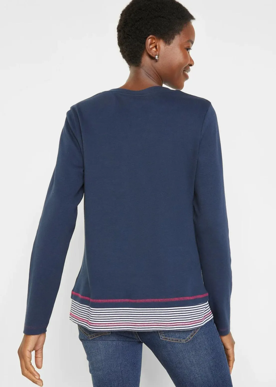 Maritimes Baumwoll-Langarmshirt in 2 in 1-Optik