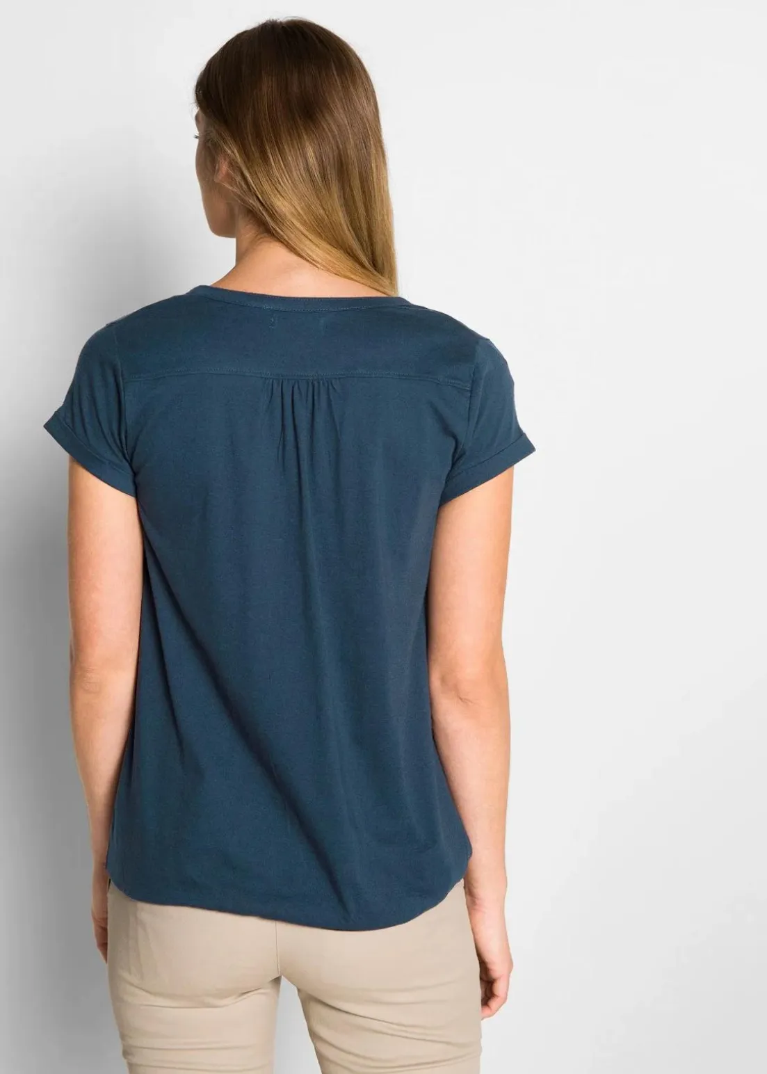 Kurzärmliges Shirt betont das Dekolleté durch den V-Ausschnitt