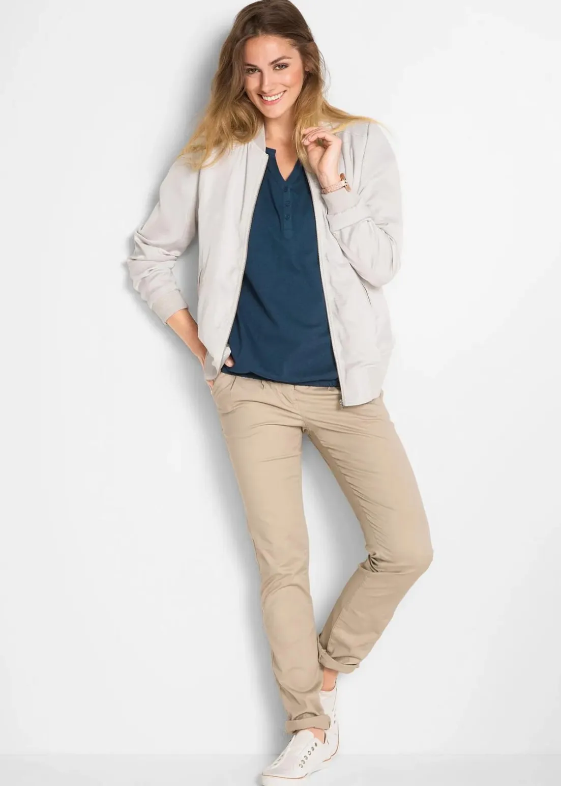 - Passformvorteile:Saum mit Gummizug und Raffung, streckender V-Ausschnitt