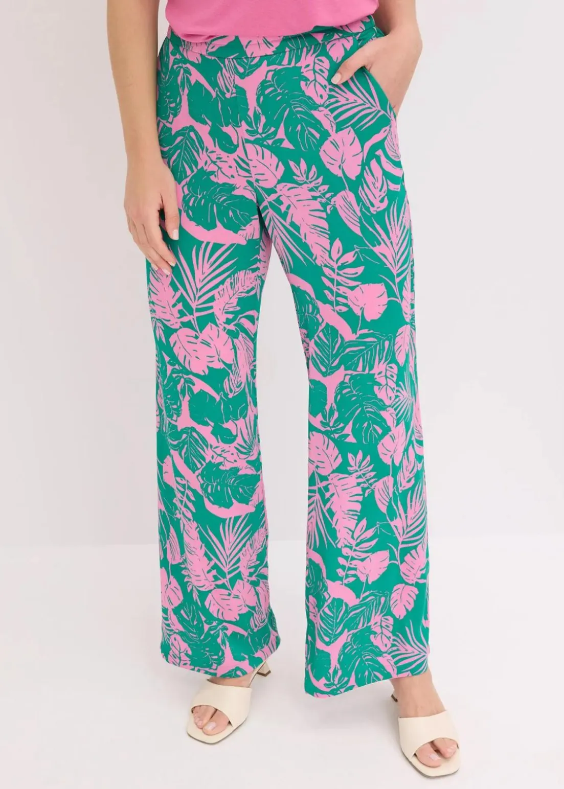 modische weit geschnittenen Hose aus strukturiertem Satin mit Gummibund hinten und floralem Print