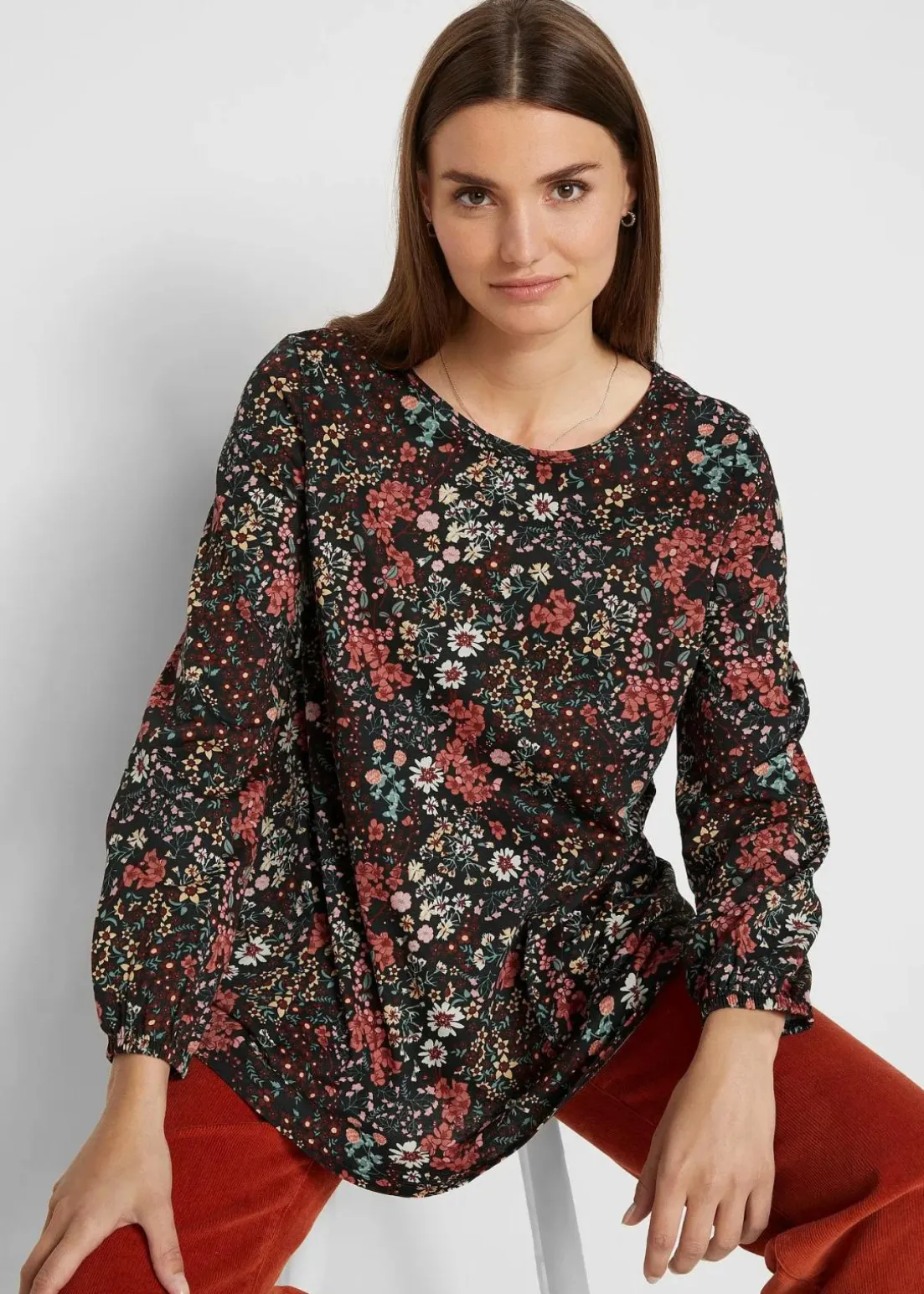 Langarmshirt mit geblümten Design aus reiner Baumwolle