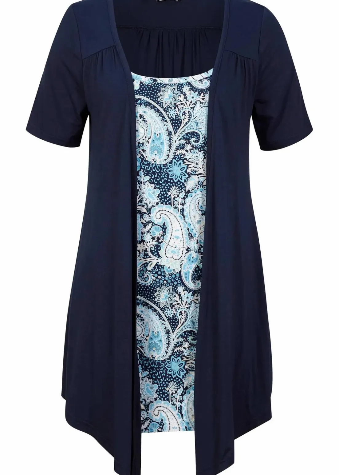 Raffiniertes 2in1 Shirt mit tollem Print und Rundhalsausschnitt, kurzarm