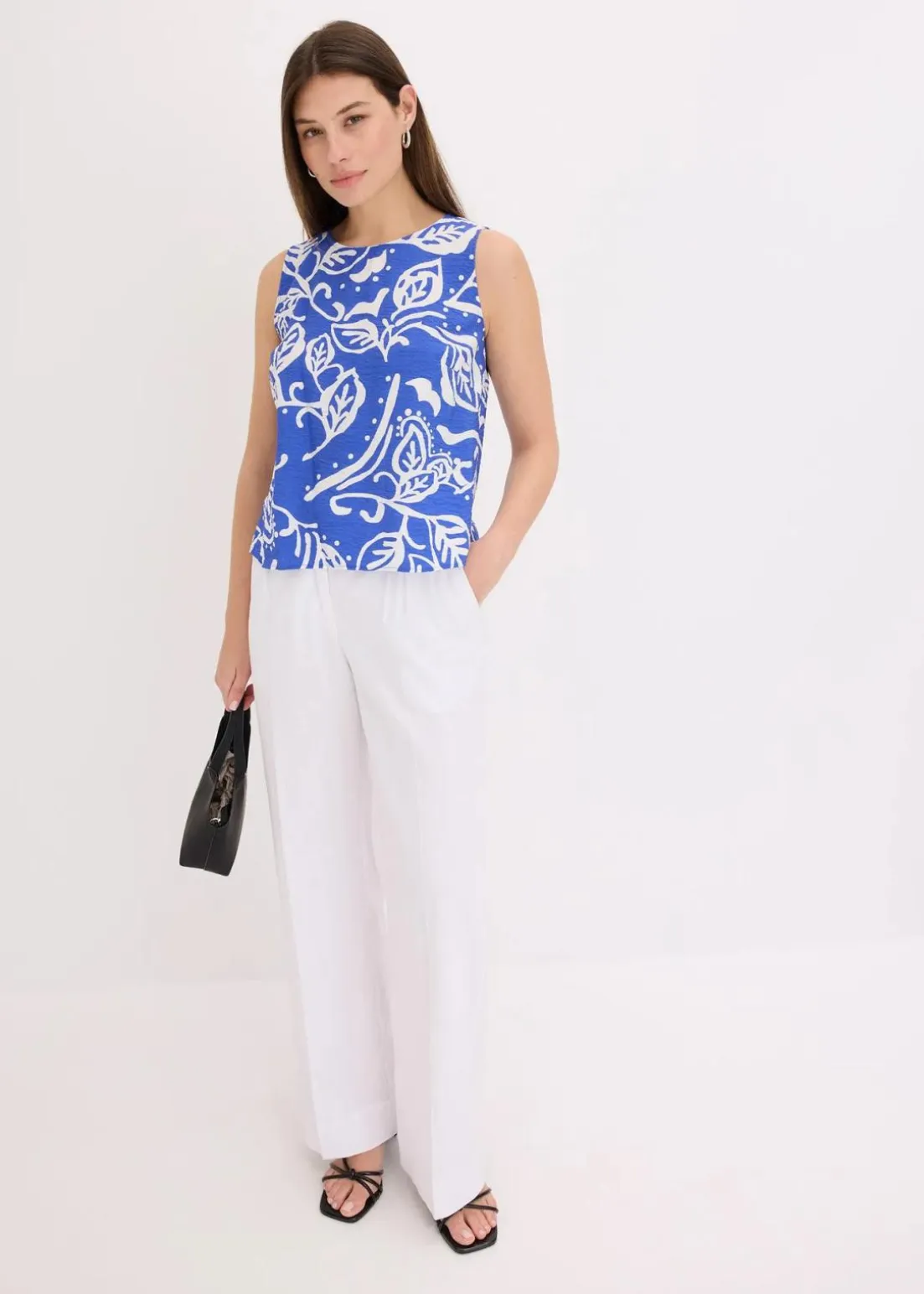 modisch bedrucktes Blusentop mit Knopfverschluss hinten am Ausschnitt