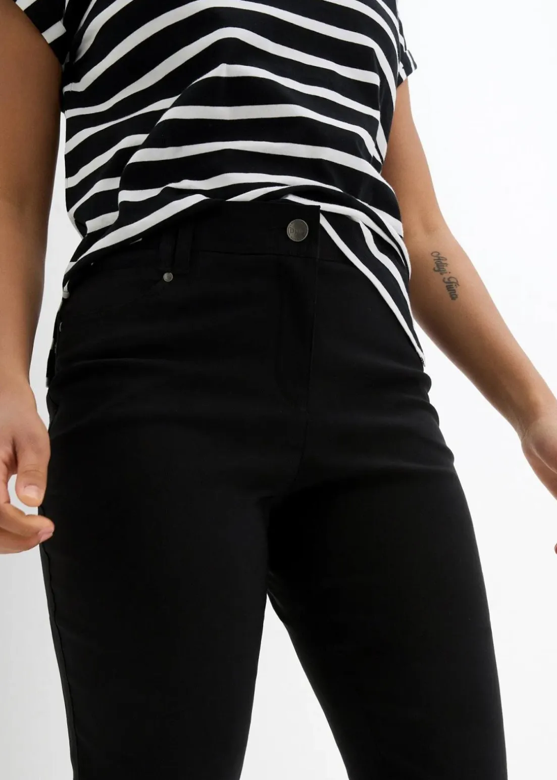 - Saumweite:enger zulaufendes Bein (Tapered Leg)