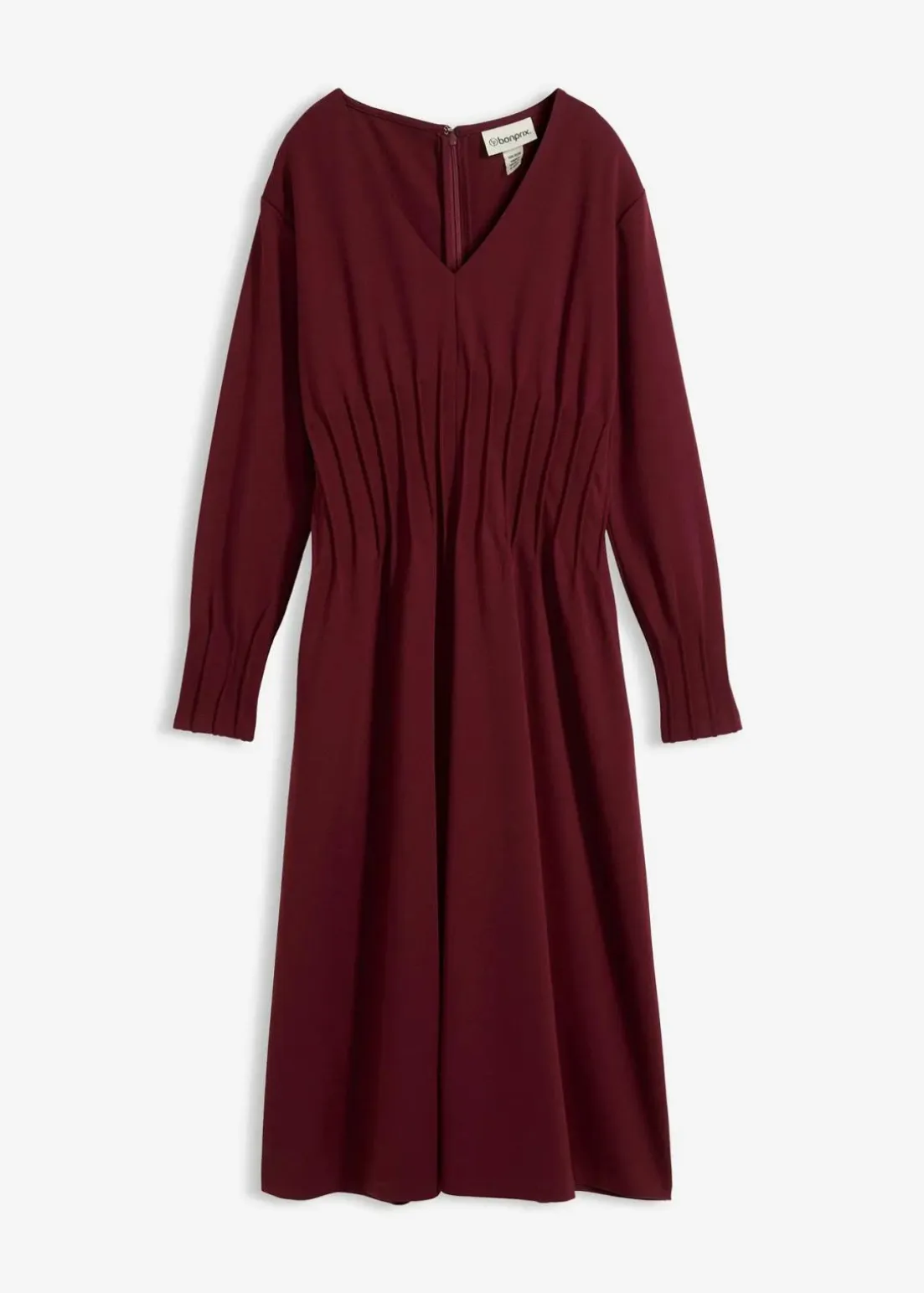 Kleid mit V-Ausschnitt und gesteppten Falten in der Taille sowie an den Ärmelenden