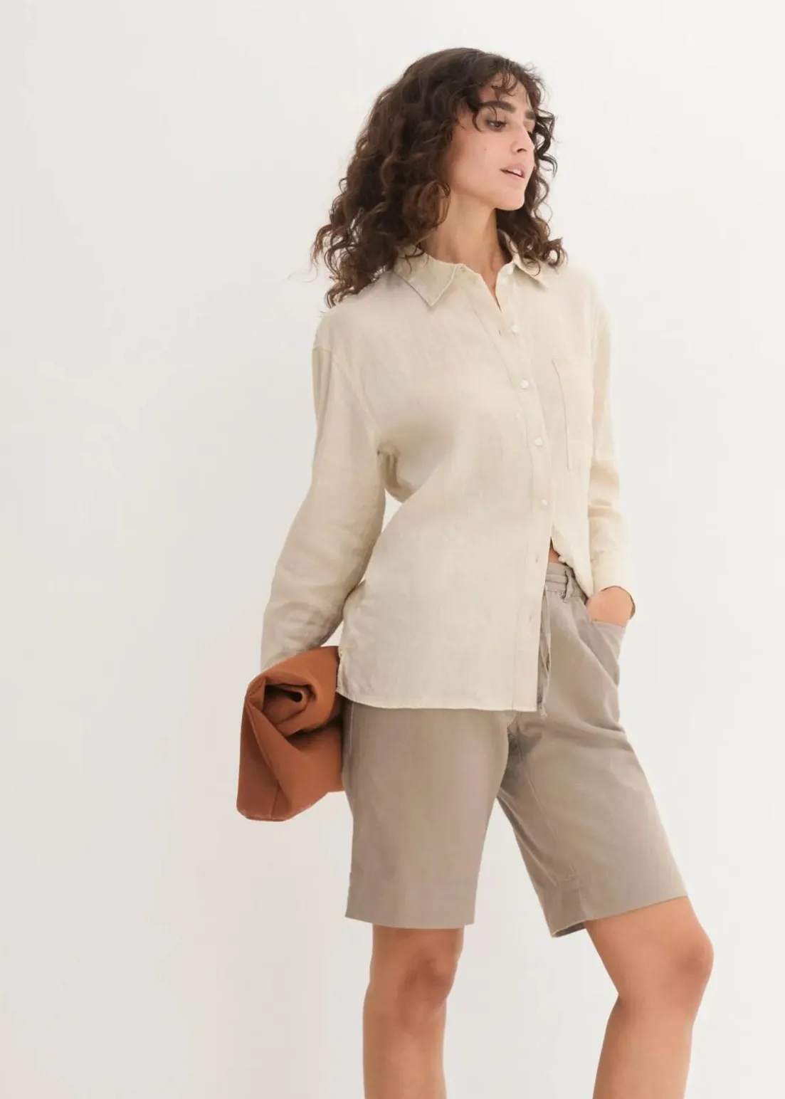 Das leichte Material macht diese Leinen-Bermuda der Marke bpc zu einem prima Kleidungsstück für wärmere Temperaturen. Durch den umschlagbaren Saum lässt sich die Länge der weichgewaschenen Bermuda variieren. Der Teilgummibund mit Bindeband zur Weitenregulierung verleiht einen bequemen Sitz.Weitere praktische Details sind die zwei Eingrifftaschen auf der Vorderseite und die aufgesetzten Hosentaschen hinten.