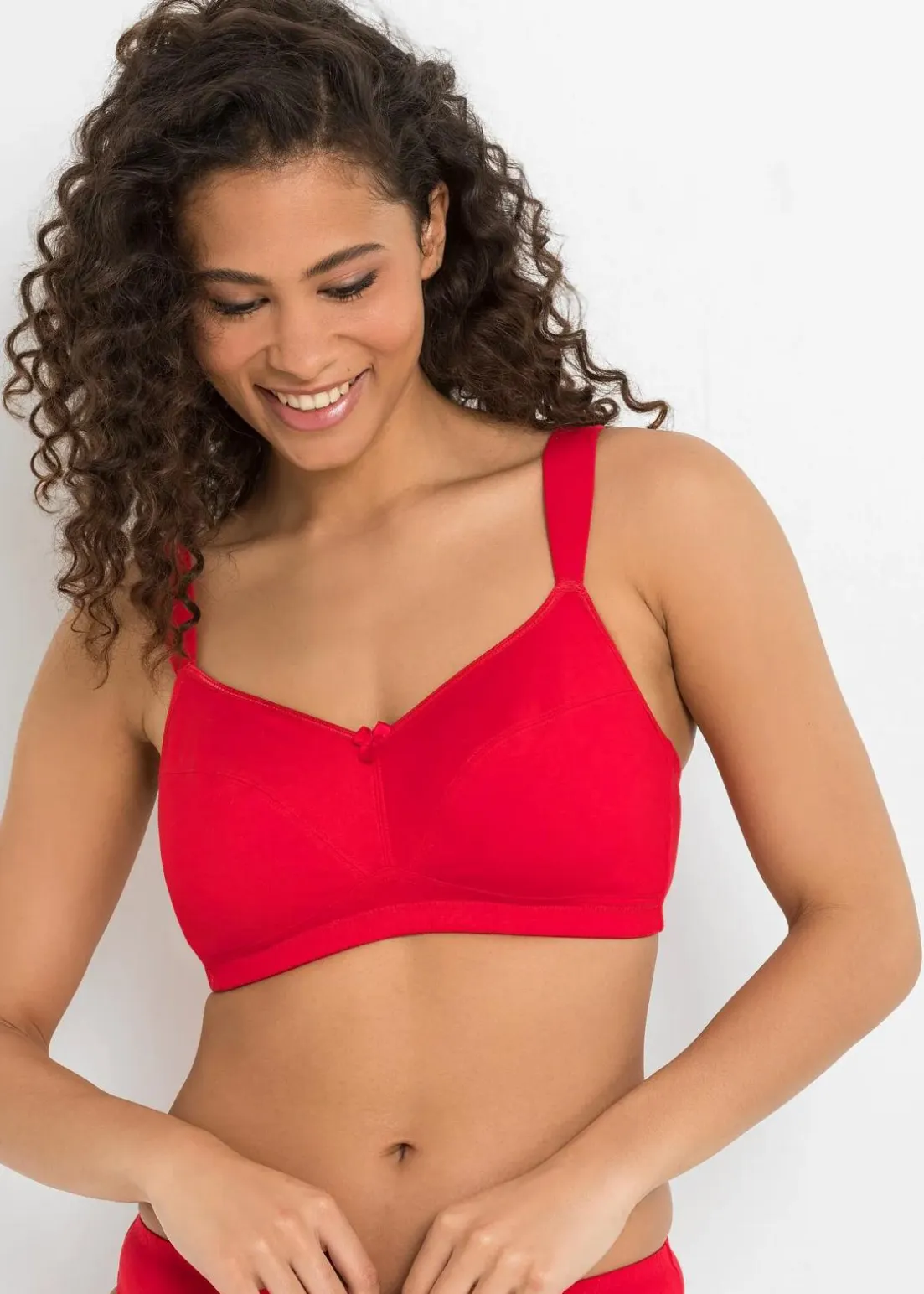 Der bügellose BH aus Bio-Baumwolle wird im praktischen 3er-Pack geliefert. Eine feine Paspel ziert die Cupkanten und wird von einer Schleife ergänzt. Dank seines weichen Materials und der bügellosen Cups verleiht der BH höchsten Tragekomfort.