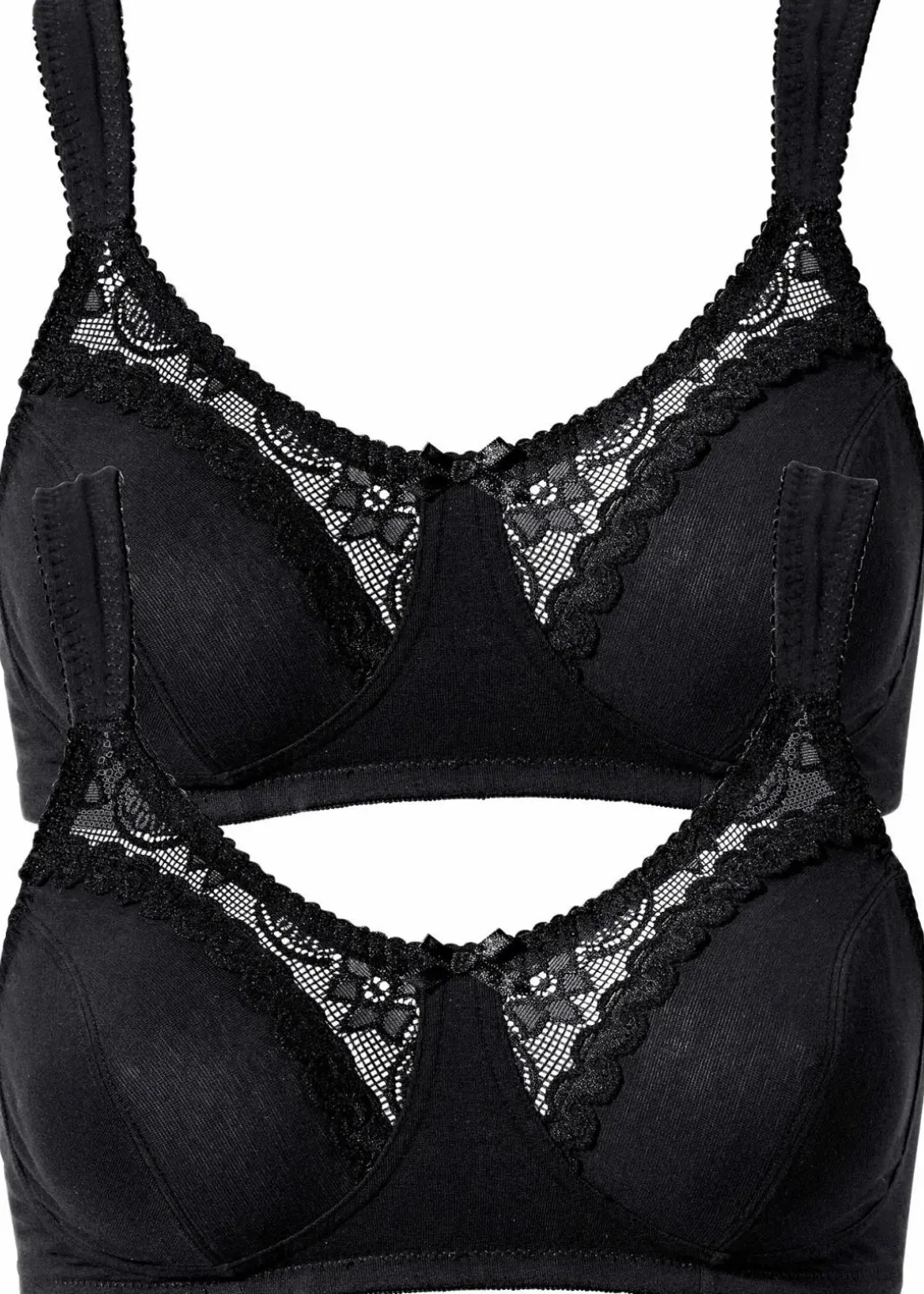 Der Tragekomfort ist bei diesem BH ohne Bügel besonders hoch. Die verstellbaren Träger sind schön breit geschnitten und leicht gepolstert, damit sie nicht unangenehm einschneiden. Das macht den BH aus Bio-Baumwolle zum perfekten Begleiter im Alltag.An der oberen Hälfte der Cups ist edle Spitze verarbeitet, die dem BH im Zweierpack von bpc einen Hauch Raffinesse verleiht.