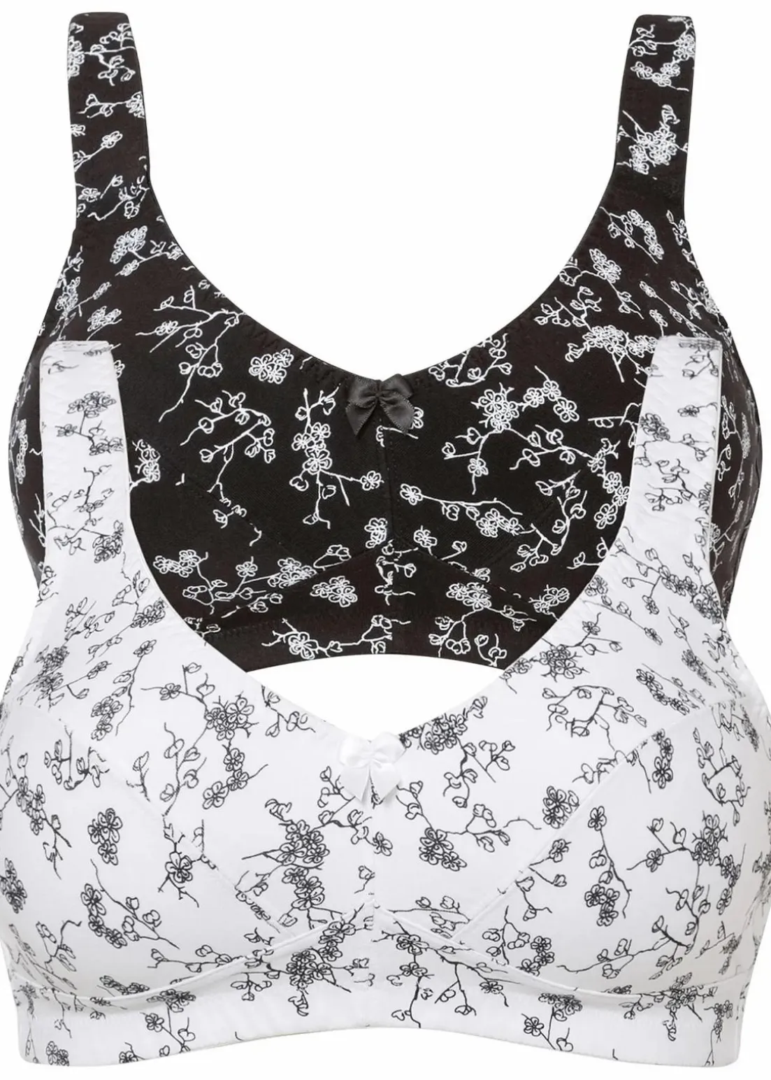 Der BH ohne Bügel bietet mit seiner schönen Bio-Baumwollqualität angenehmen Tragekomfort. Das weiche Material schmiegt sich perfekt an und die leicht gepolsterten Träger entlasten die Schulterpartie.Im attraktiven Doppelpack sind zwei BHs ohne Bügel aus der bpc collection mit einem verspielten Blumendruck enthalten. Dieser ansprechende BH vereint bequemes Tragegefühl und modisches Design.