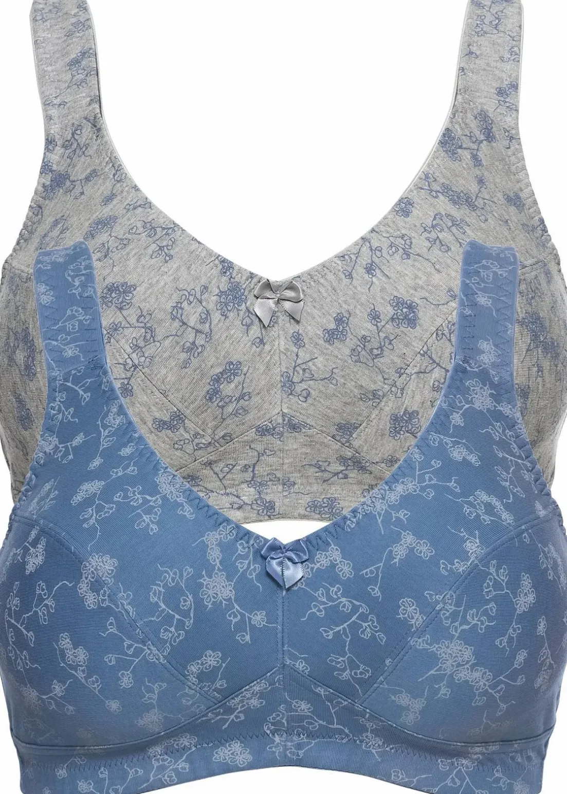 Der BH ohne Bügel bietet mit seiner schönen Bio-Baumwollqualität angenehmen Tragekomfort. Das weiche Material schmiegt sich perfekt an und die leicht gepolsterten Träger entlasten die Schulterpartie.Im attraktiven Doppelpack sind zwei BHs ohne Bügel aus der bpc collection mit einem verspielten Blumendruck enthalten. Dieser ansprechende BH vereint bequemes Tragegefühl und modisches Design.