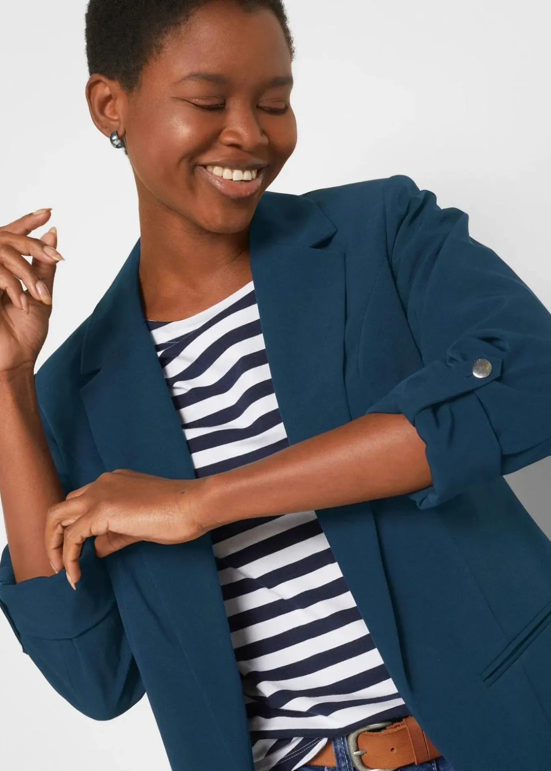 Klassicher Stretch-Blazer mit Innenfutter, Ärmel mit Turn-Up-Funktion
