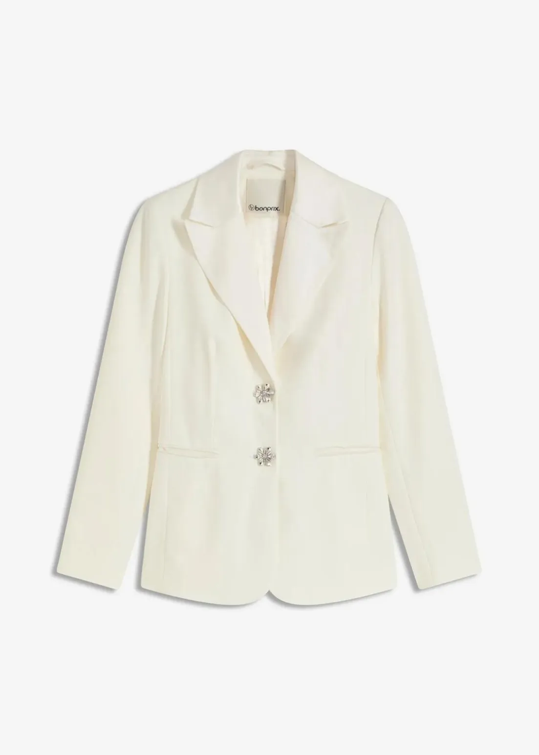 Modern und feminin: Blazer mit Satin-Kragen und Schmuckknöpfen