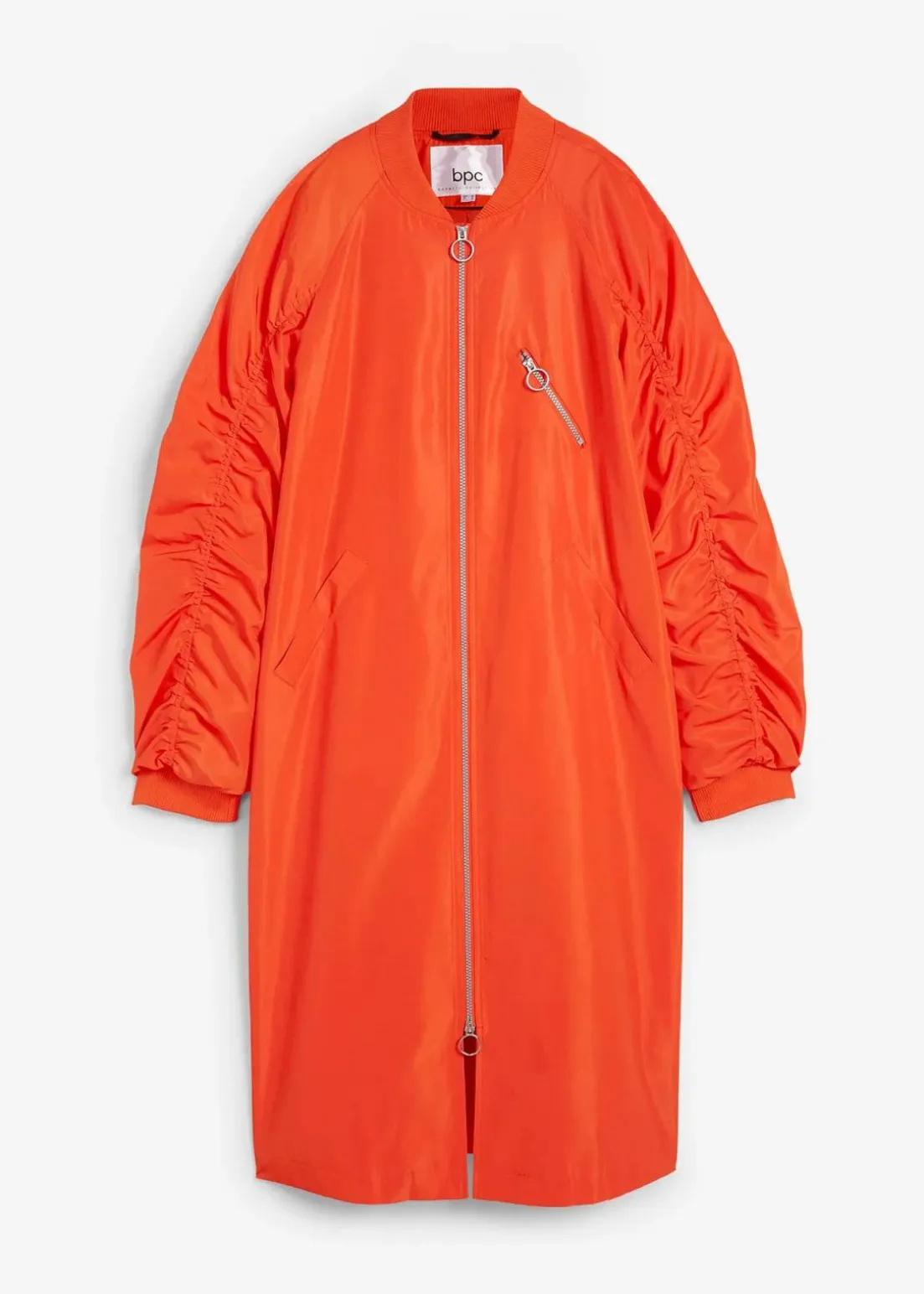 Lässig-moderner Mantel mit Raffdetail am Ärmel, Strickbündchen und Leistentaschen