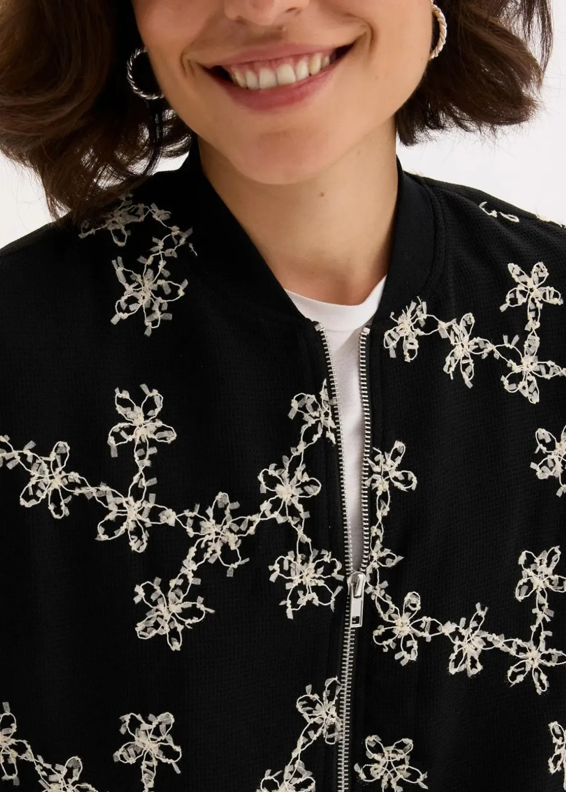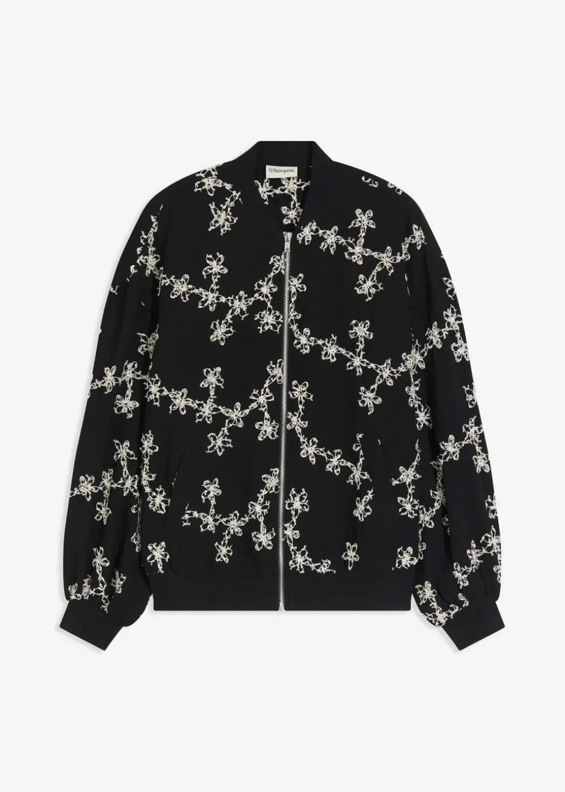 modischer Blouson mit floraler Stickerei und Reißverschluss vorne