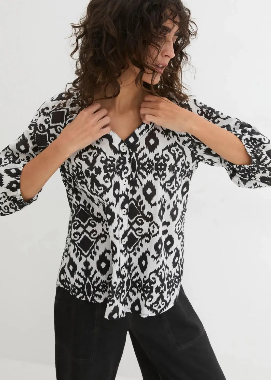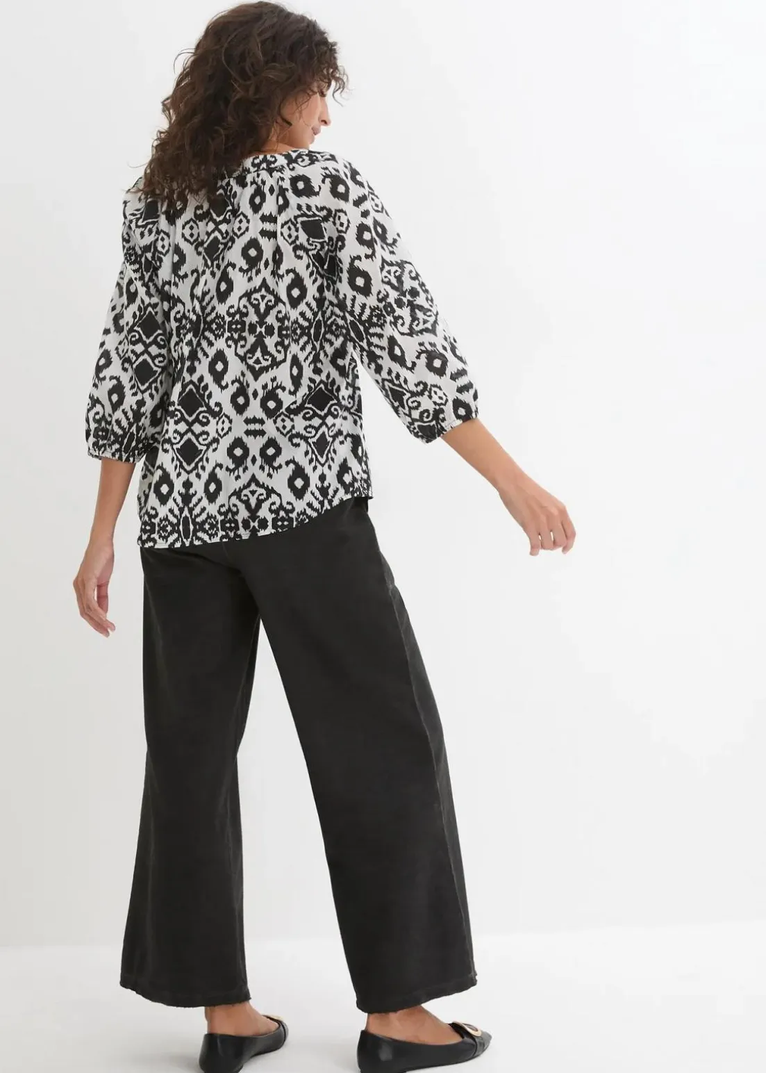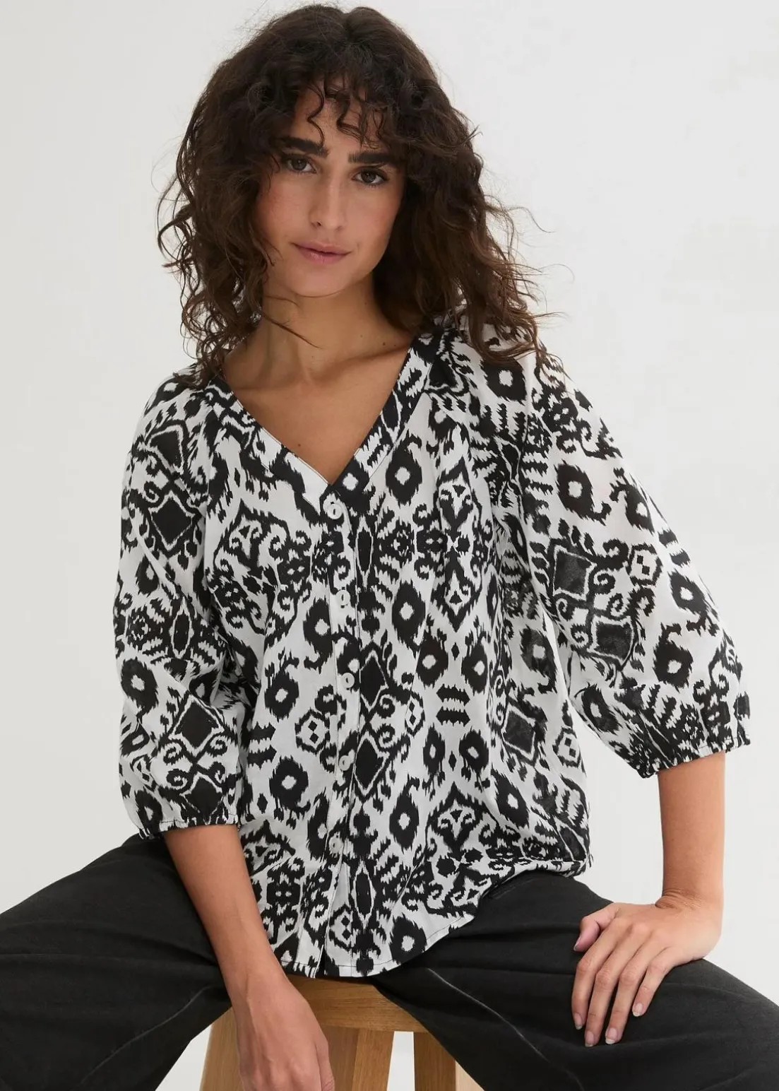 Bedruckte Baumwoll-Bluse mit 3/4 Arm