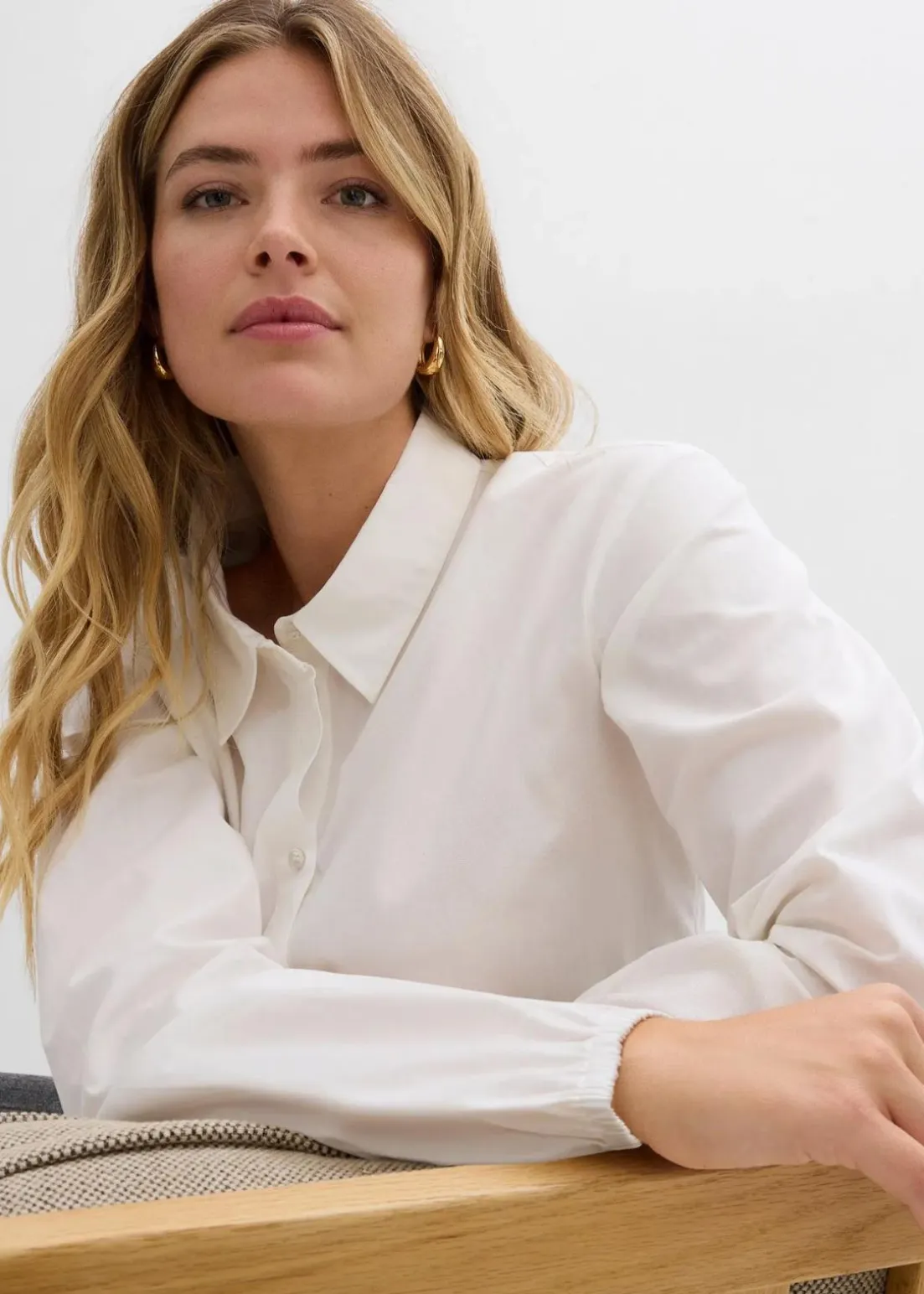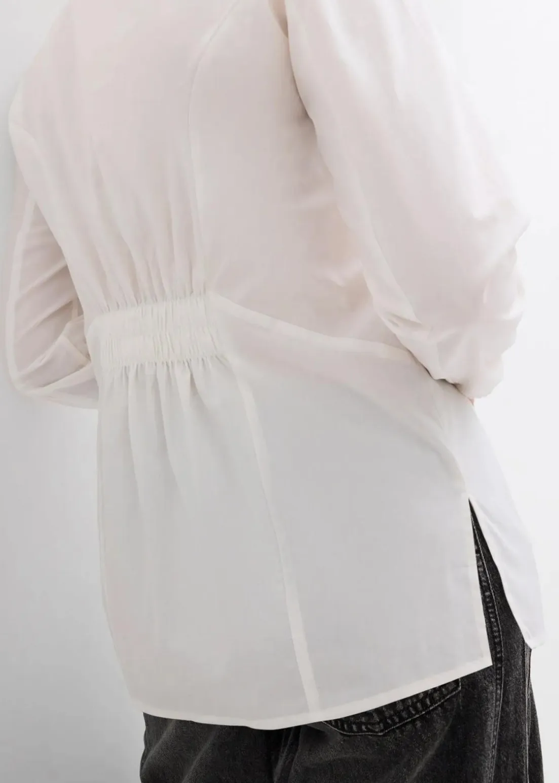 Langärmlige Baumwollbluse mit Elastikeinsatz am Rücken sowie elastischem Ärmelabschluss.