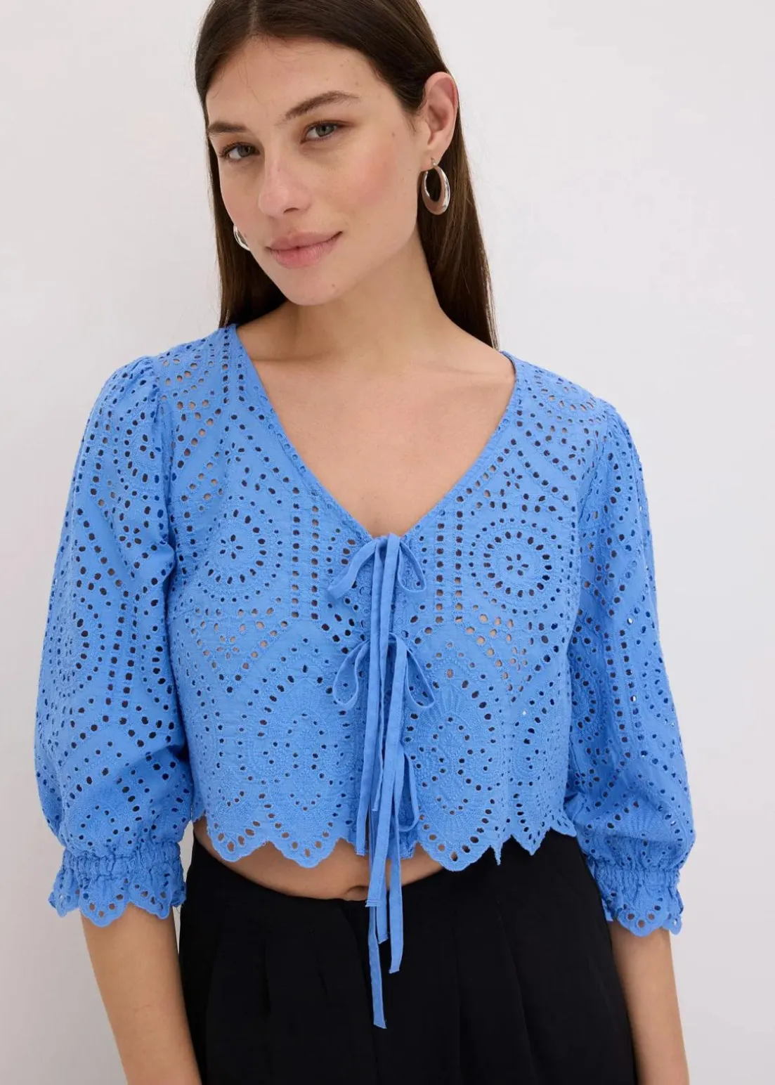 Lochstickerei-Bluse mit Schleifen zum Binden