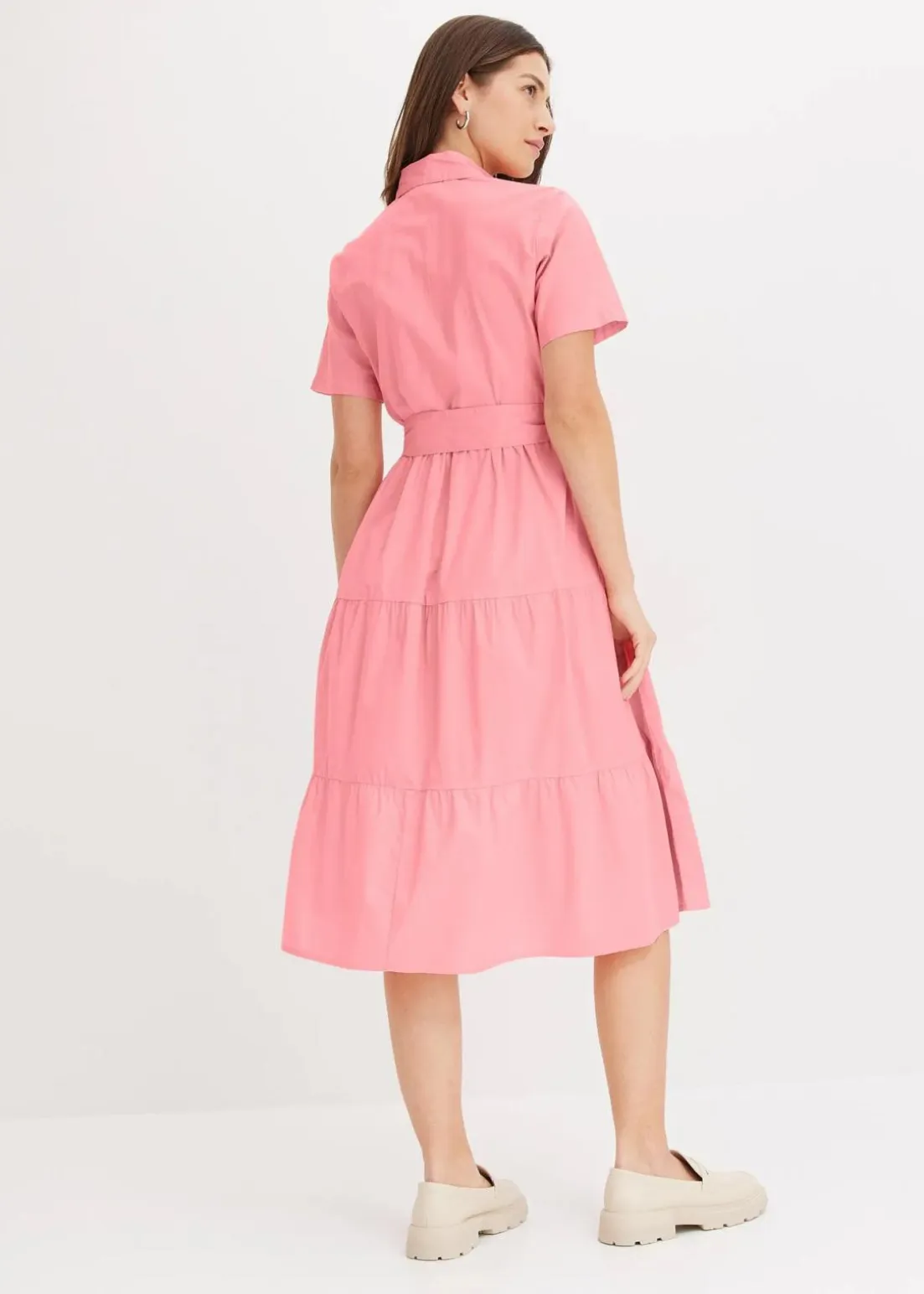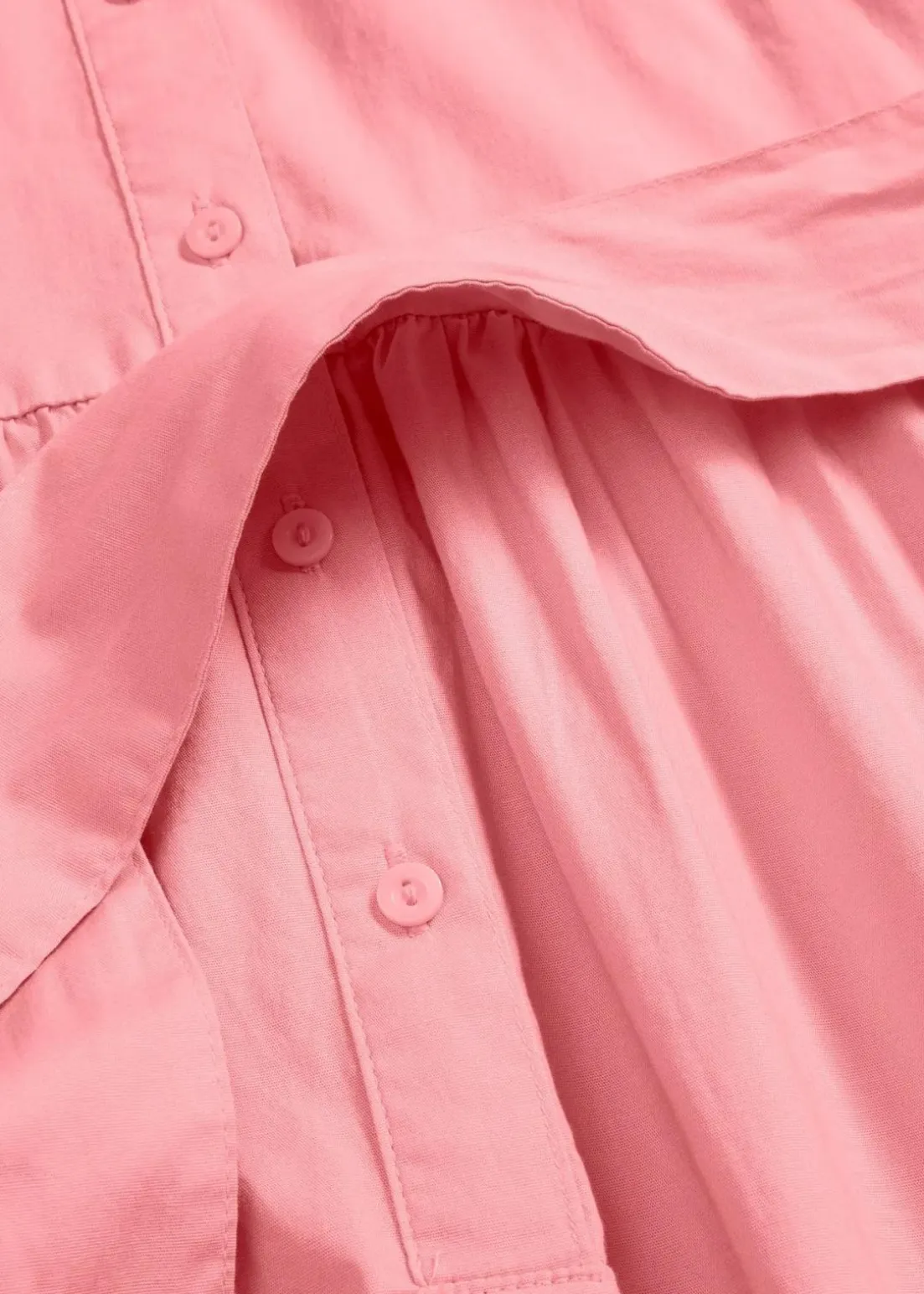 Hemdblusenkleid mit Bindeband, aufgesetzte Pattentaschen und Volantsrock
