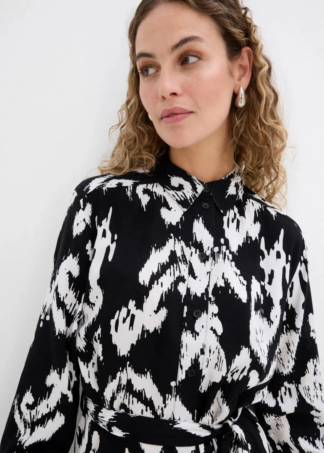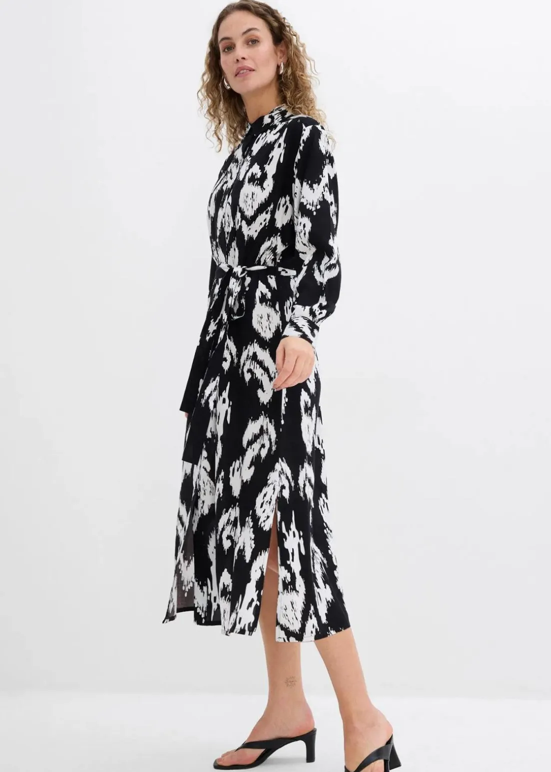 Wadenlanges Hemdblusenkleid mit Ethnodruck