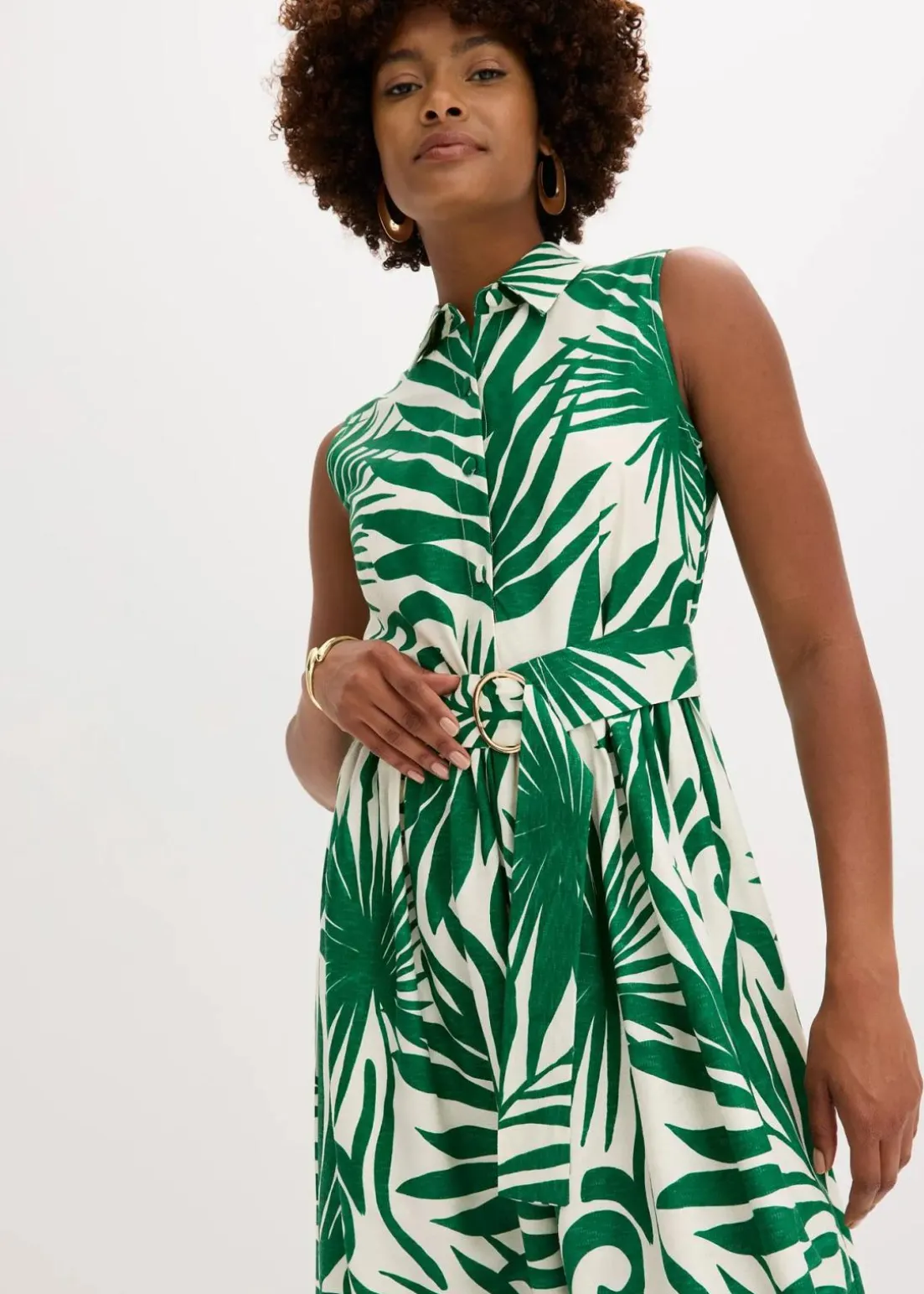 floral bedrucktes Blusenkleid aus fließender Viskose mit dekorativem Bindegürtel in der Taille