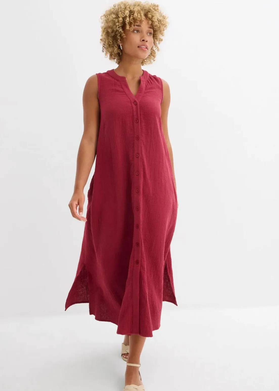 Langes Blusenkleid aus reiner Baumwolle mit Oversize-Passform. Mit seitlichen Nahttaschen und Schlitzen.