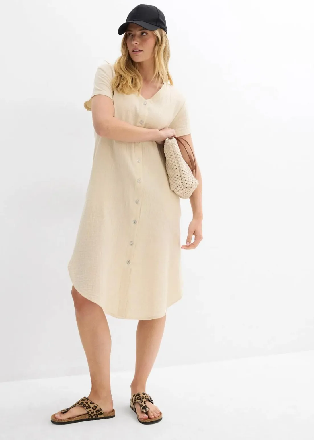 - Passformvorteile:hüftbedeckend, mehr Komfort durch Seitenschlitze, streckender V-Ausschnitt, umspielt den Bauch, umspielt den Po, umspielt die Hüfte, umspielt die Oberschenkel, Vorderverschluss