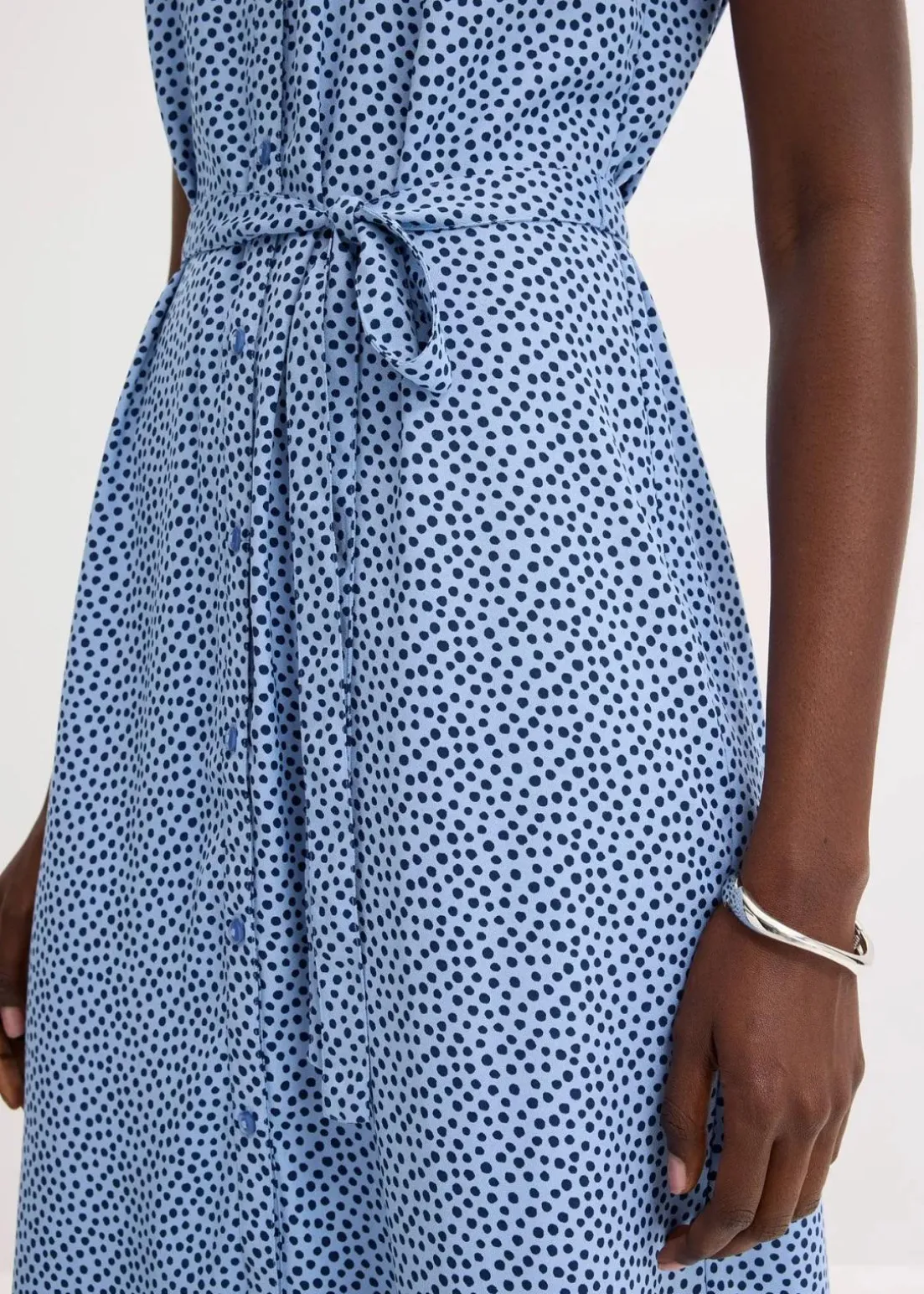 Hübsches Blusenkleid mit Pünktchen und Bindeband um die Taille