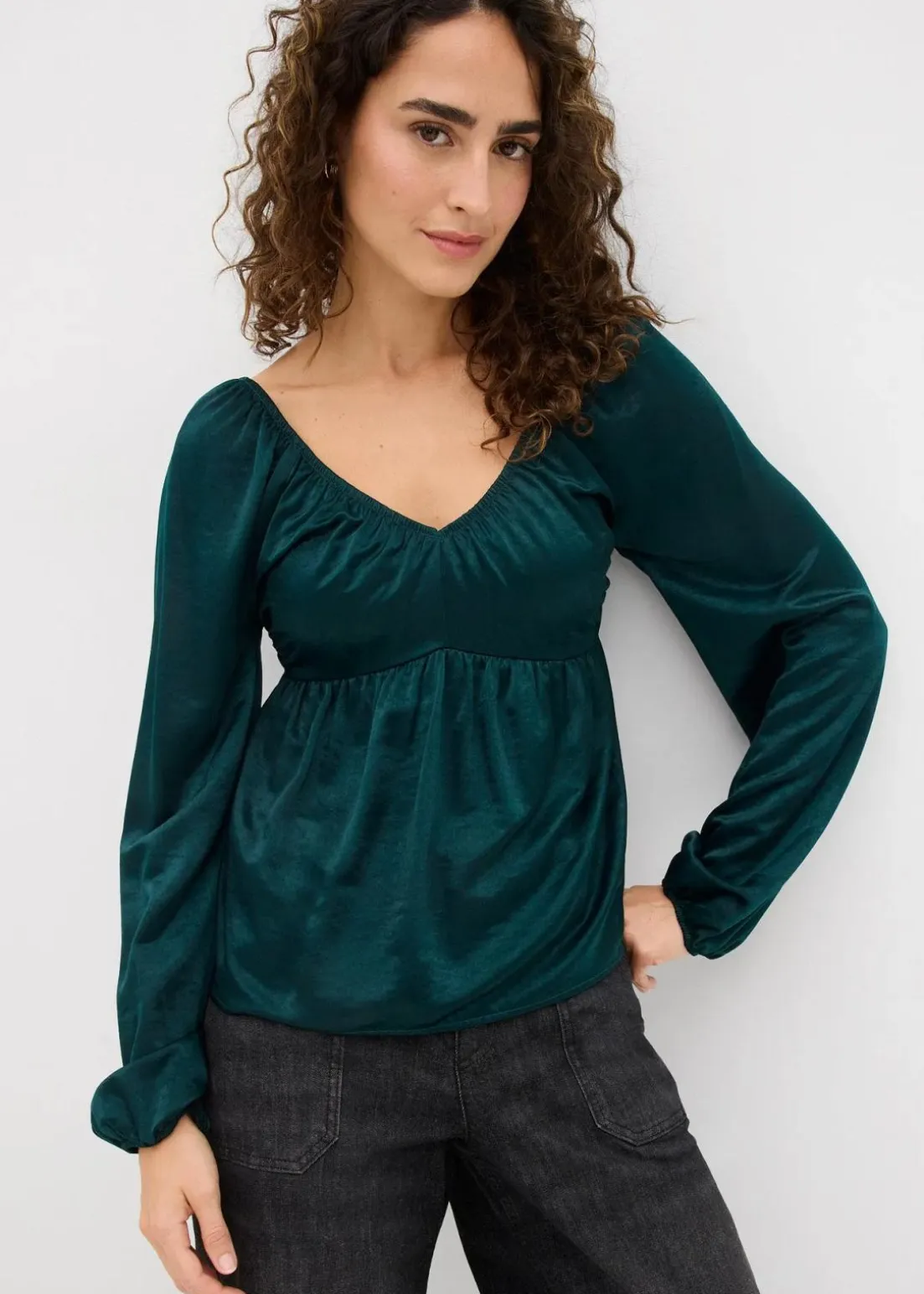 Modisches Blusenshirt mit V-Ausschnitt und Raffungen