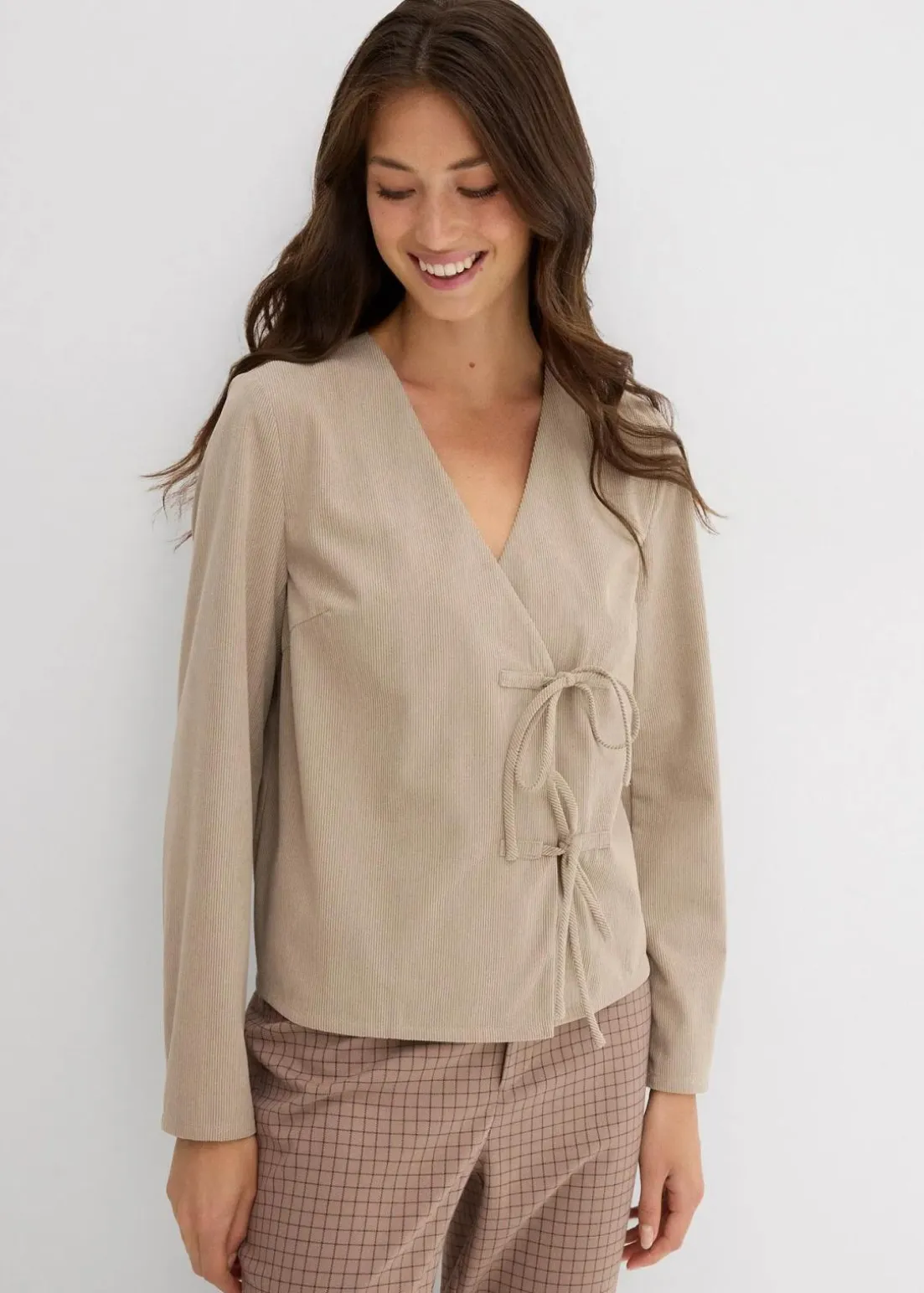 Modisches Blusenshirt aus feinem Cord mit Schleifen