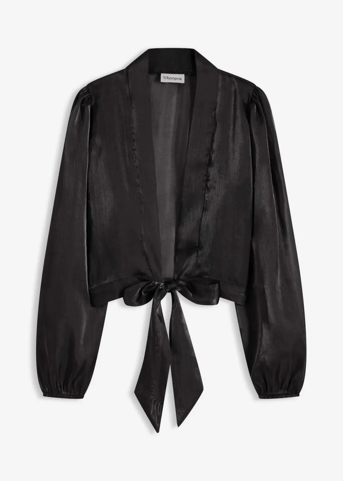 Modern und feminin: Bolero aus glänzendem Tüll mit Binde-Detail und Ballon-Ärmel