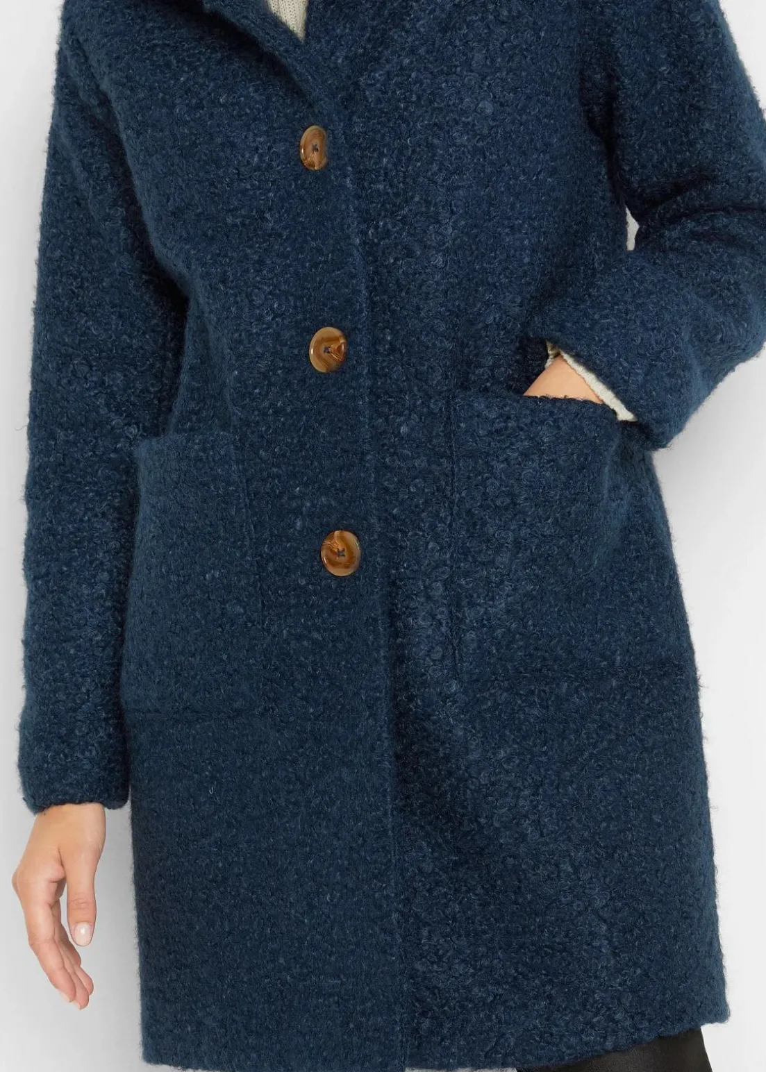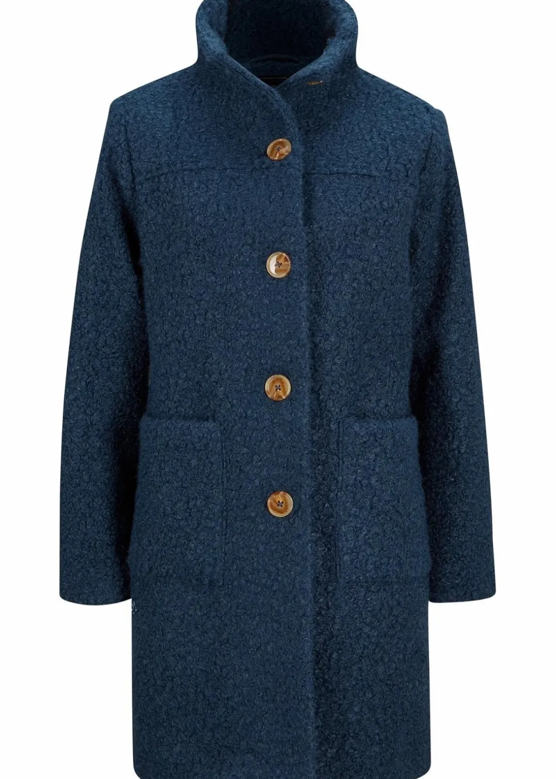 Strukturierter Mantel mit Knopfleiste und Stehkragen, figurumspielend in A-Linie
