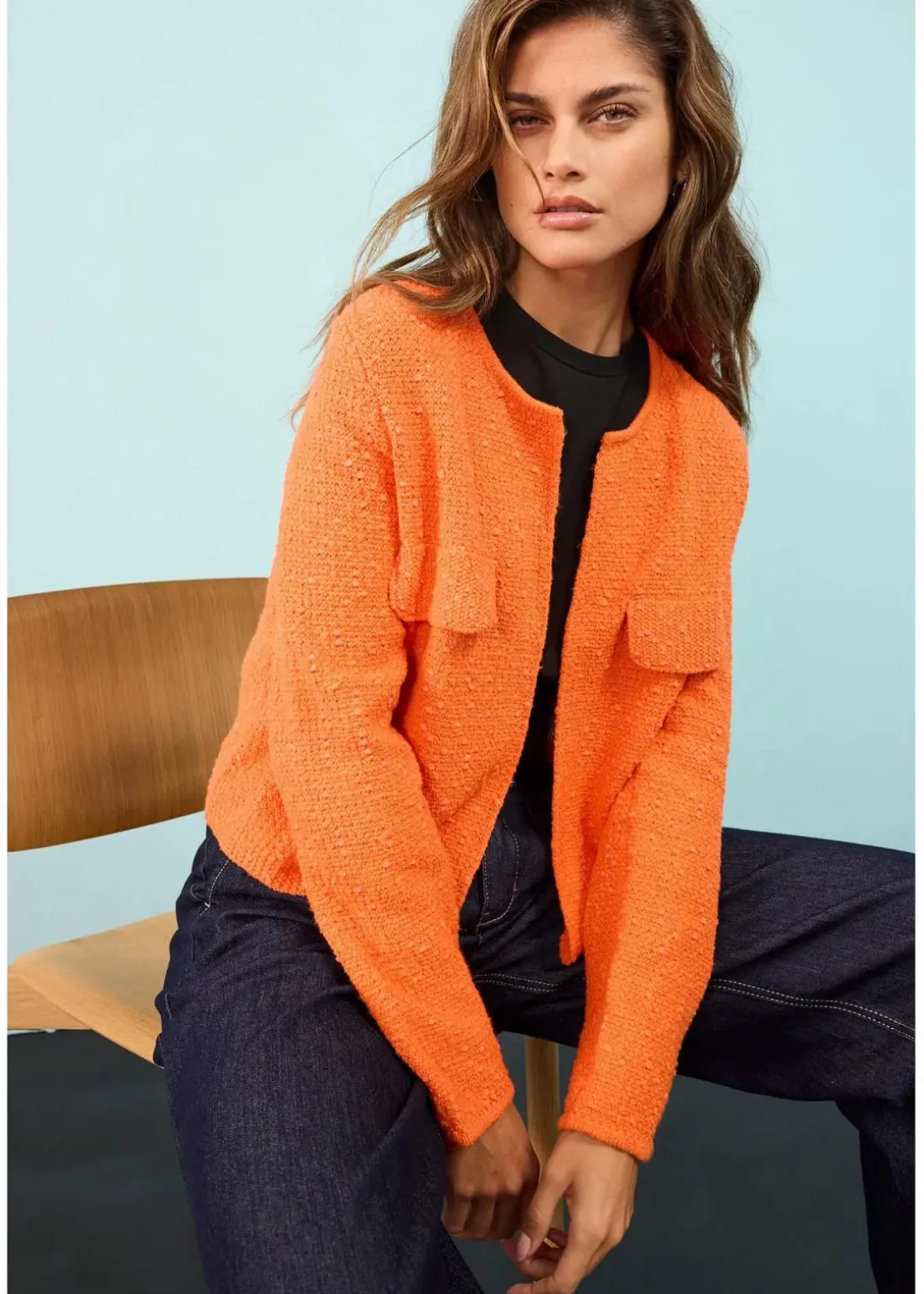 Stylische Kurz-Strickjacke aus Bouclégarn
